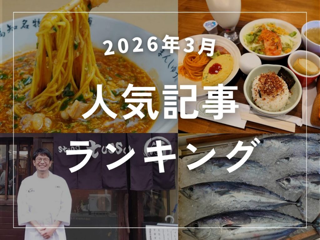 【高知家の〇〇 3月人気記事ベスト5】高知家人気記事ランキングTOP5!大阪・高知のグルメ情報がランクイン!