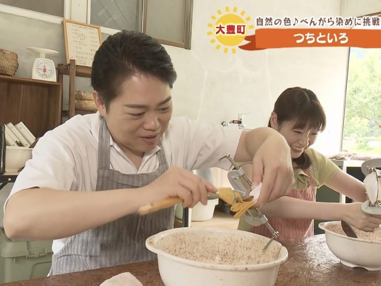【三山ひろしのさんさん歩】伝統技法べんがら染めでオリジナル手ぬぐい作りに挑戦「つちといろ」