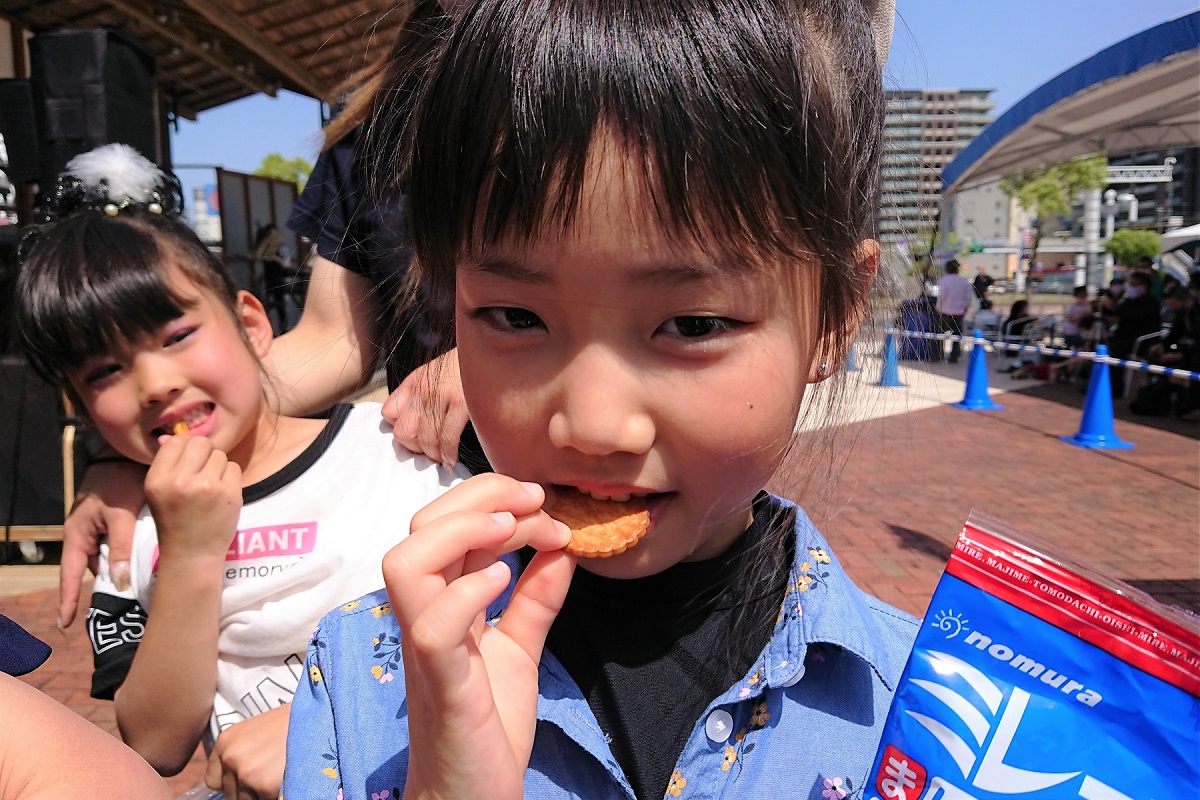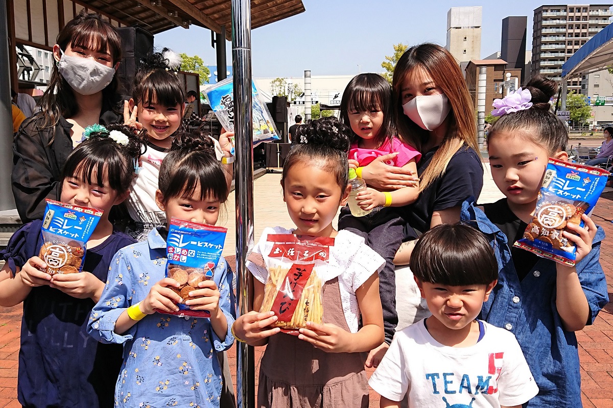 それでは、ミレーと芋けんぴ、本当に食べだしたら止まらなくなるのはどっちだ、というのが今回の取材内容である。そこで、JR高知駅南側にある「こうち旅広場」で開催されたイベントにお邪魔して、出演者の皆様に実際に食べてもらいながら話を聞いてみた。