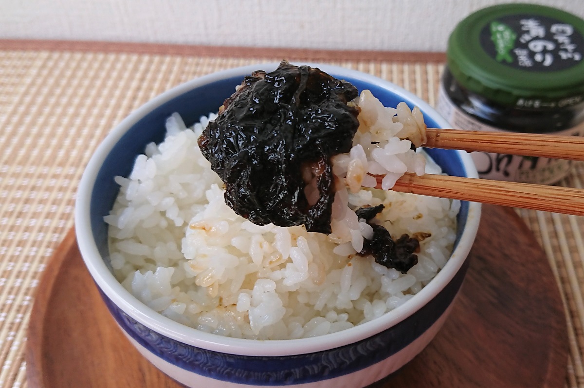 佃煮にするには最高の「青さのり」で、独特の香りと風味が楽しめ、柔らかくもしっかりとした舌ざわりを感じることができる。