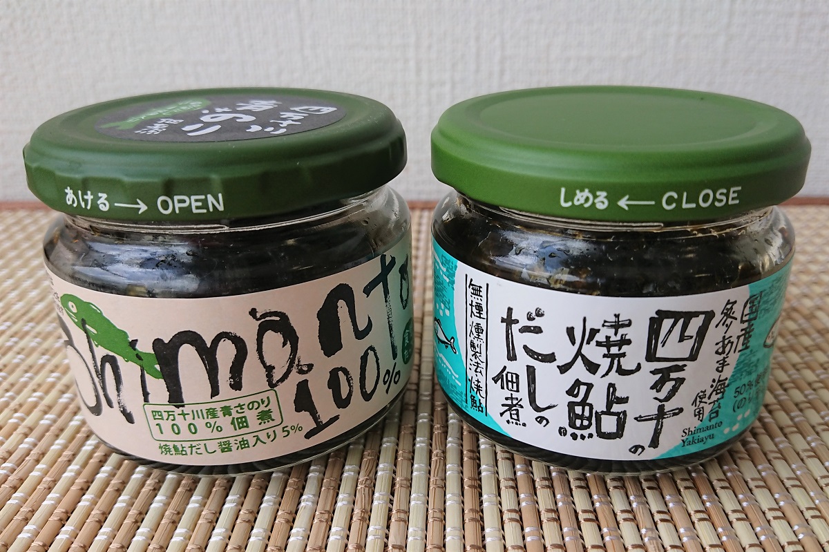 「四万十の焼鮎だしの佃煮」と「四万十100%川のり佃煮」も、四万十生産(有)がほこる人気商品である。