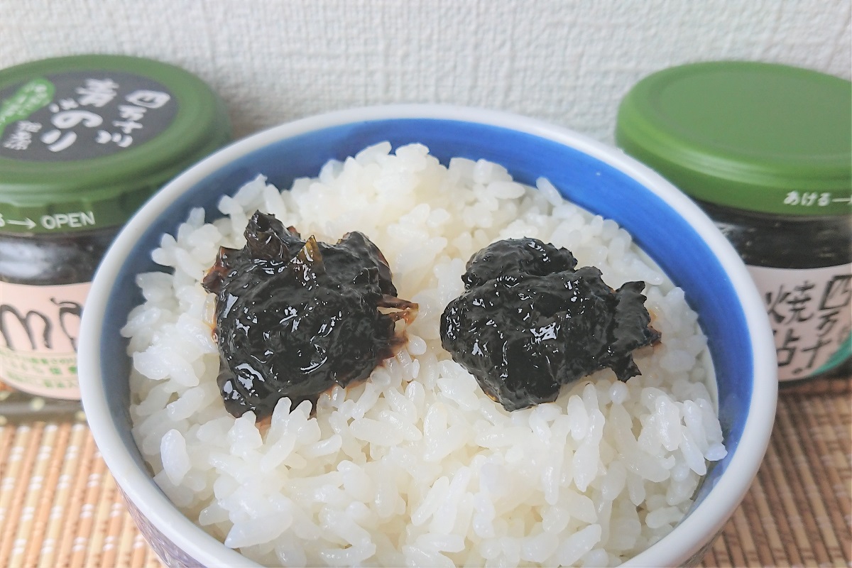 「四万十の焼鮎だしの佃煮」は、香ばしく炙った国産の「炙りあま海苔」と、風味豊かな「青さのり」、香ばしくまろやかな「焼鮎だし」を合わせて仕上げており、しっかりした深みのある味と、香ばしい豊かなコクと香りを楽しむことができる。