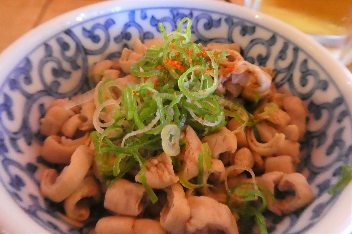 葉牡丹独特のさっぱりとした味付けだ。くにゅくにゅとした食感を楽しみながら、ビールとともにいただく。