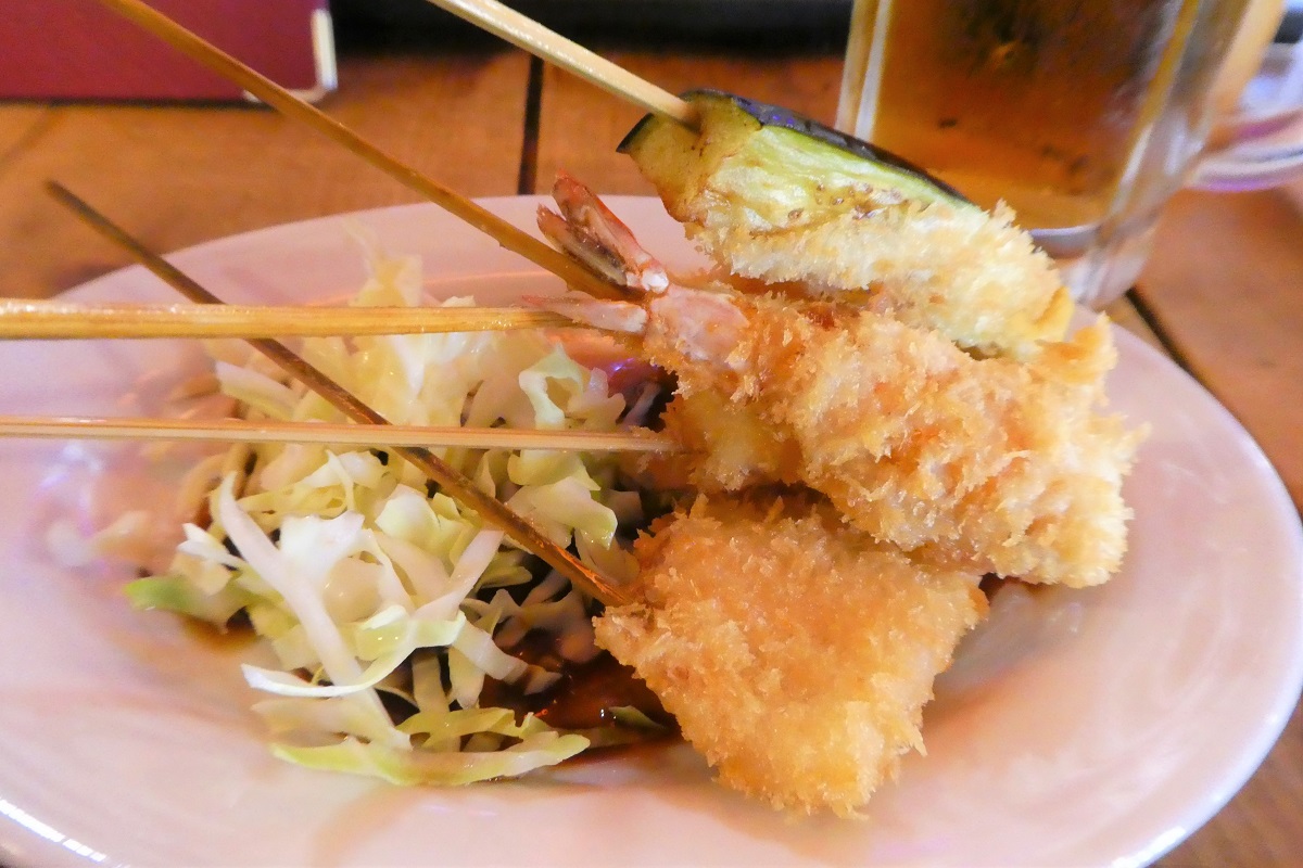 そうこうしているうちに、葉牡丹名物「串フライ盛り合わせ(429円)」の登場だ。