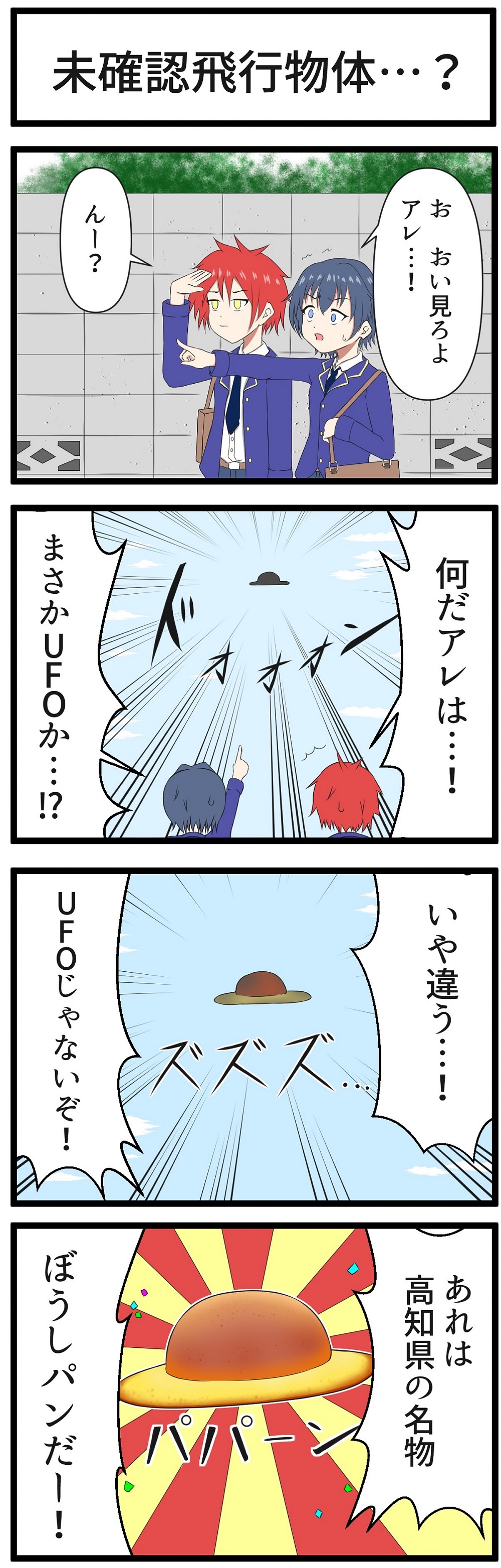 学校法人龍馬学園の国際デザイン・ビューティカレッジの学生さんが、「高知家の〇〇」とコラボレーション。高知のご当地パン「ぼうしパン」の記事を4コマ漫画で紹介してくれました。