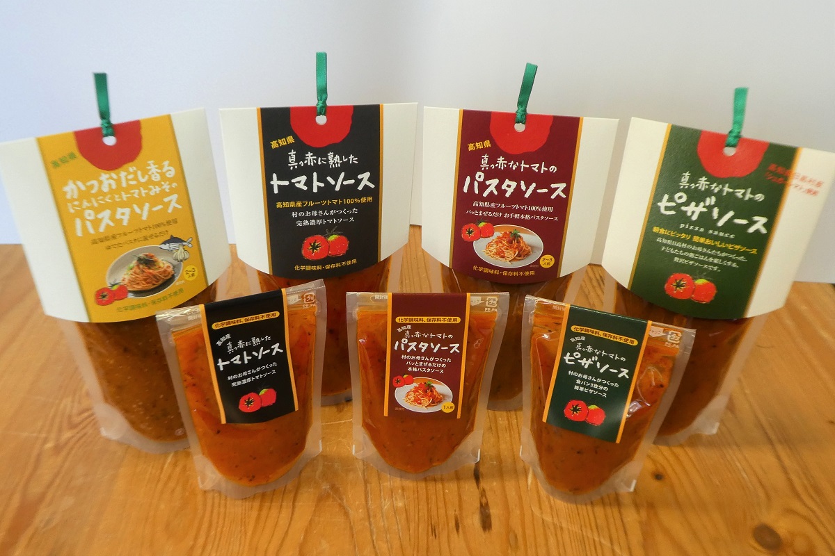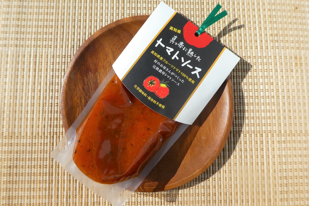 「真っ赤に熟したトマトソース」は、日高町の「村の駅ひだか」や、高知市の「とさのさとAGLI COLLETTO」、「土佐せれくとしょっぷ てんこす」などで購入できる。