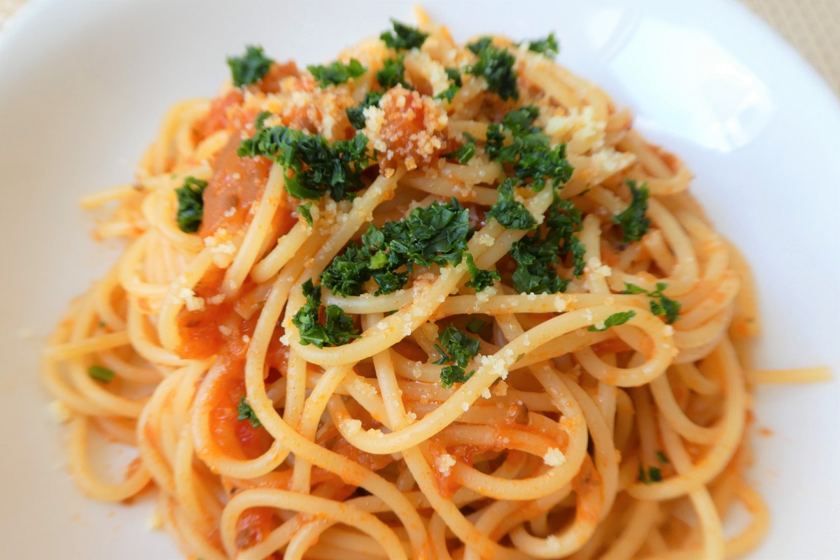 シンプルでありながら奥深い、飽きの来ない、何とも美味しいトマトソースである。