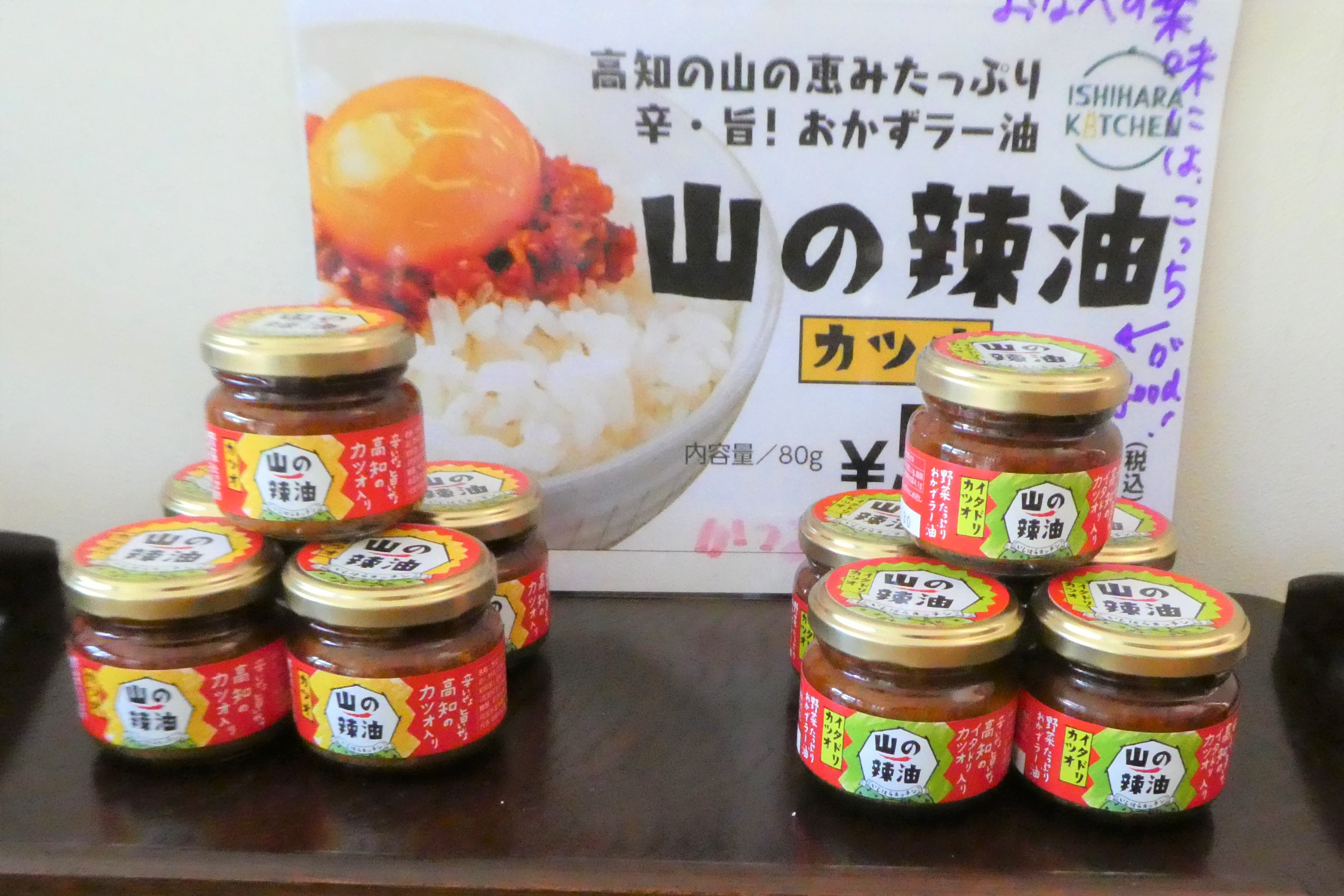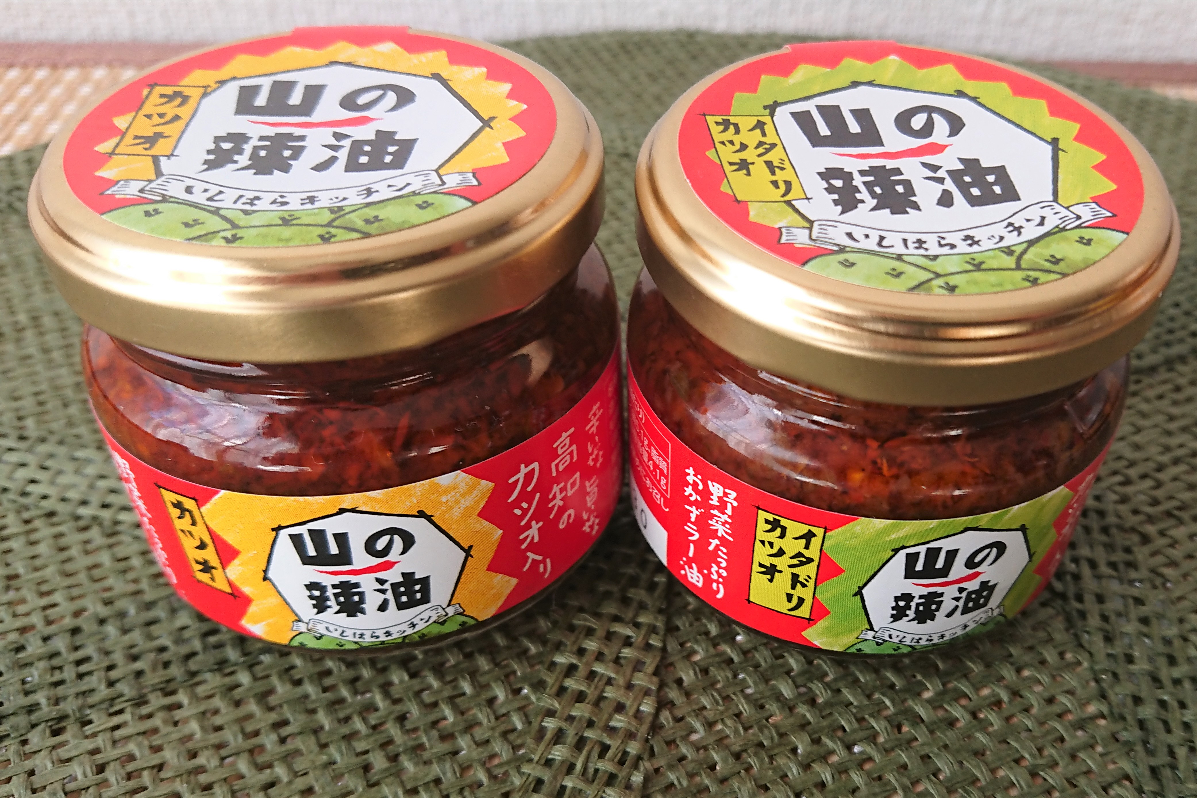 「山の辣油」は「山の辣油カツオ入り」と高知県ではおなじみの山菜イタドリ入りの「山の辣油イタドリカツオ入り」の2種類。