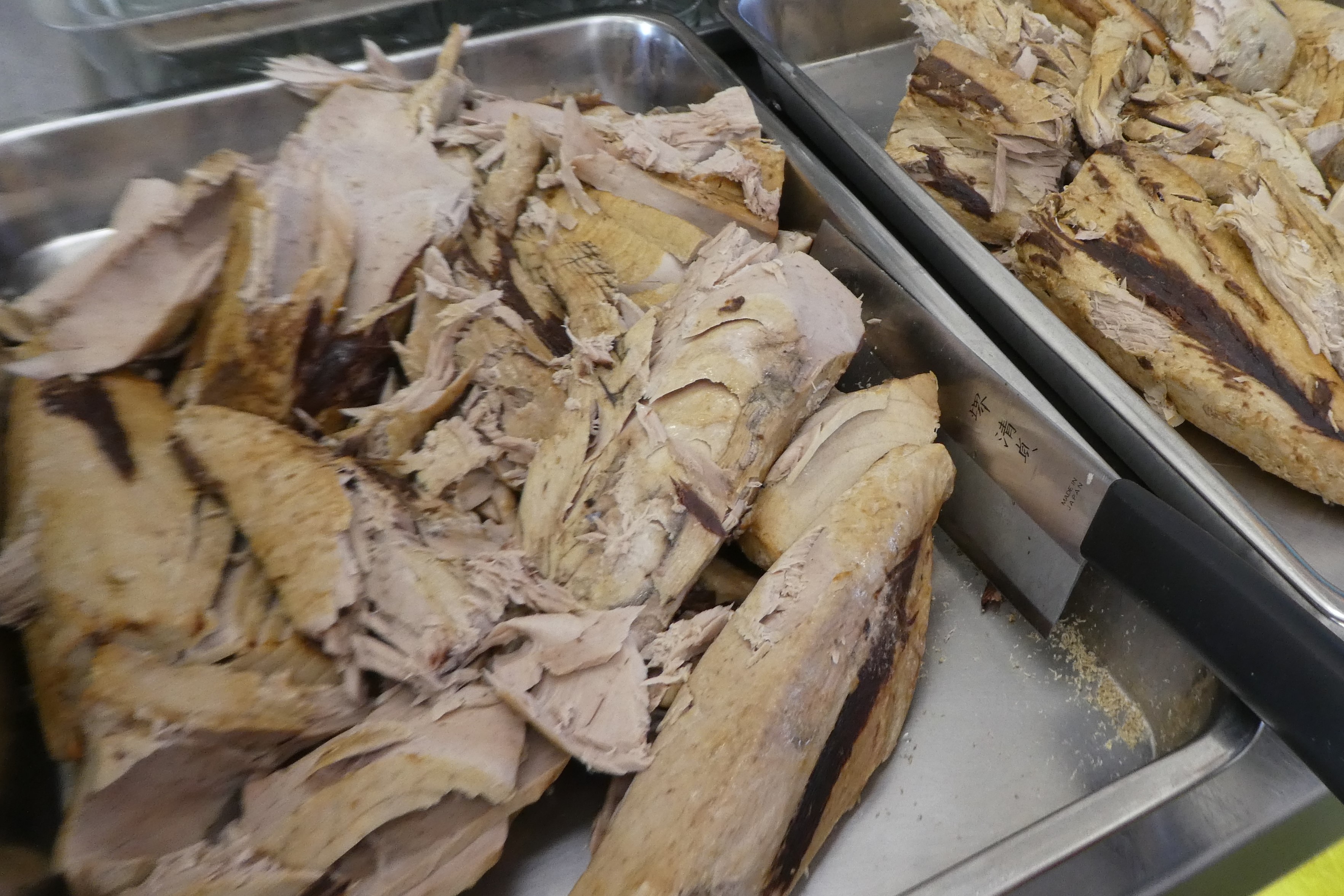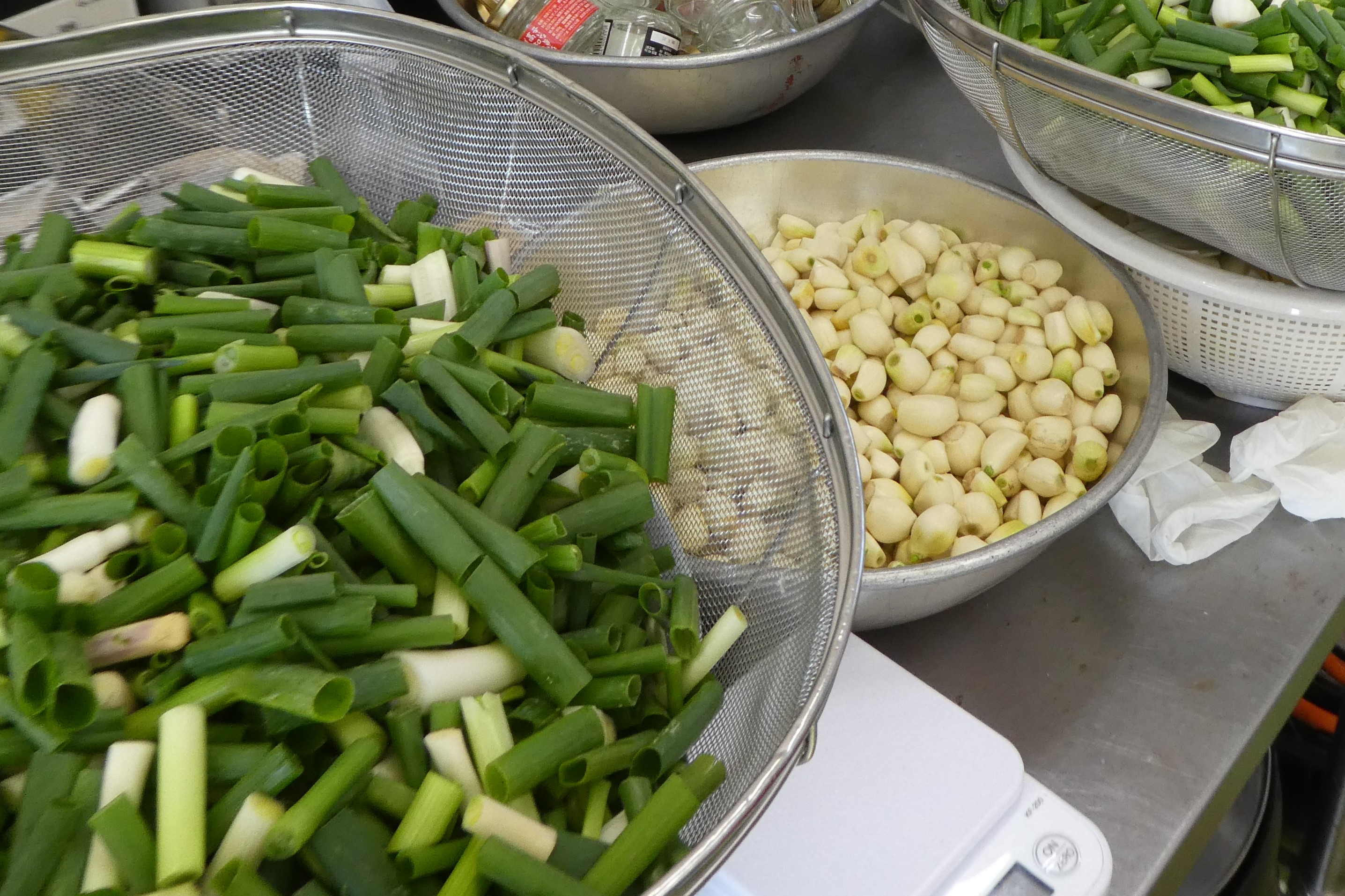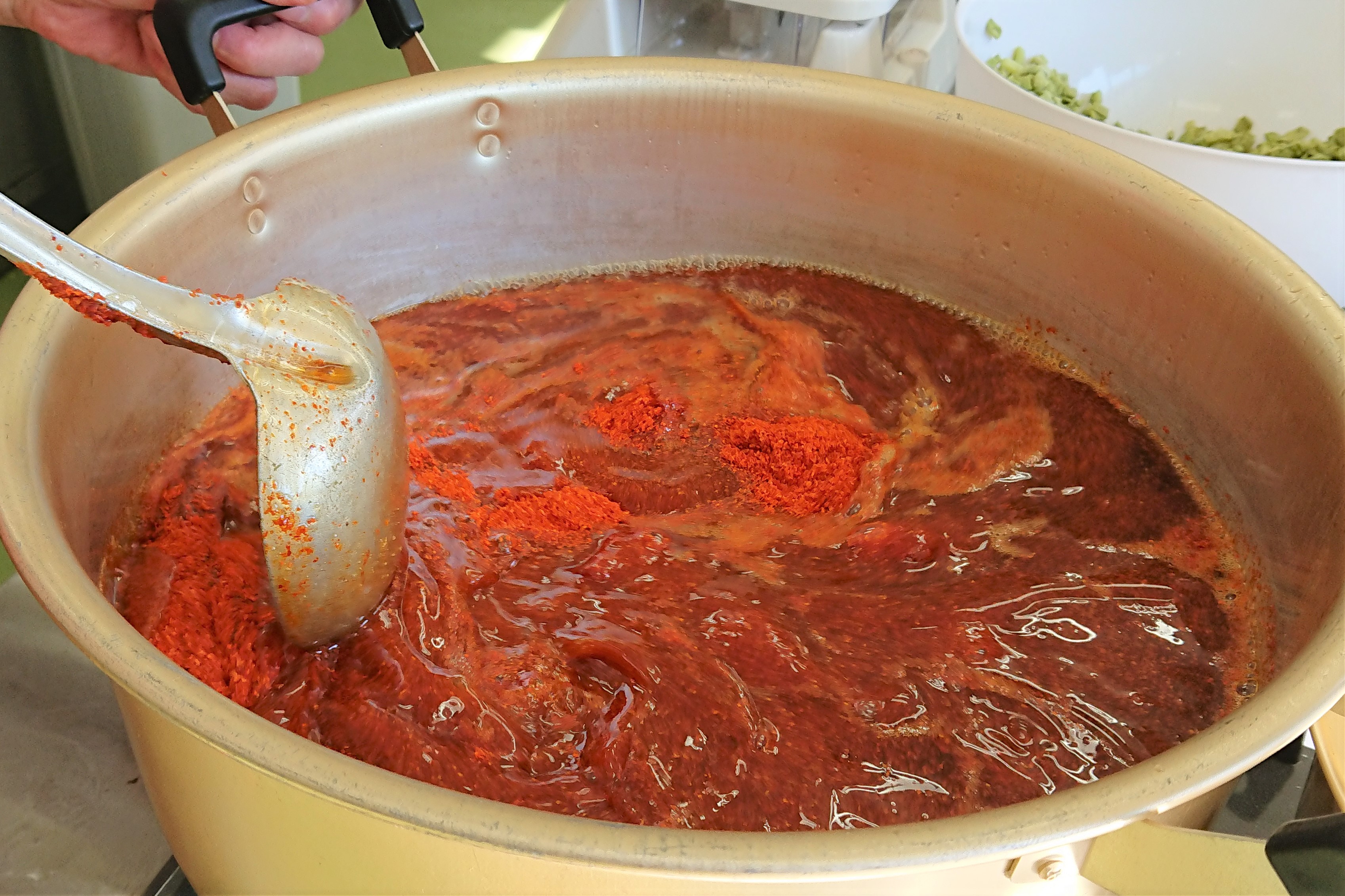 唐辛子、室戸海洋深層水塩、てんさい糖、有機JAS醤油など調味料にもこだわり、化学調味料は一切使わない。すべて手作業で、ただただ丁寧にひとつひとつの工程を進めていく、いしはらキッチンのみなさんの息の合った動きは一切のよどみがない。