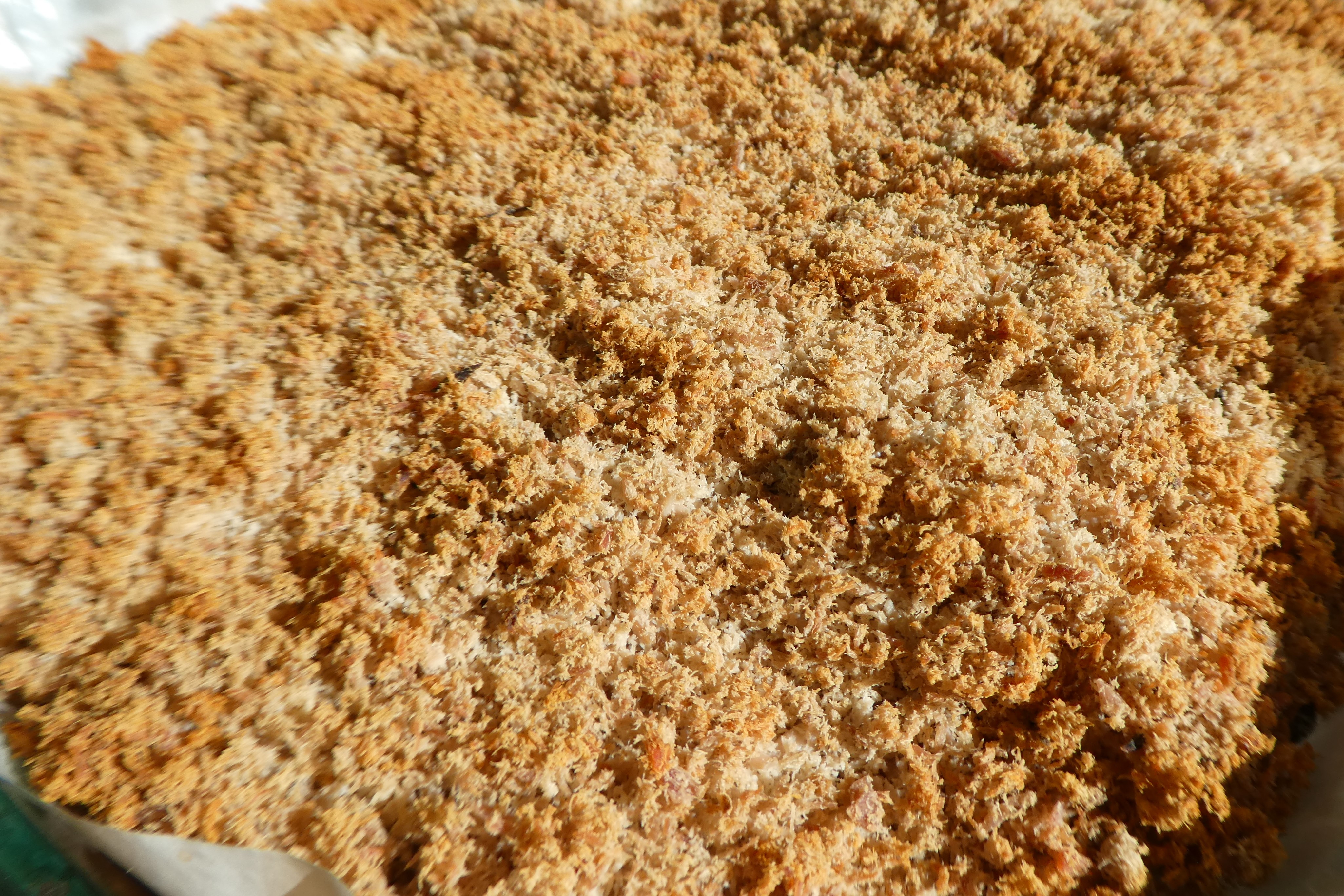 細かくほぐしローストしたカツオと、茗荷に玉ねぎ、味のポイントとなるニンニクとネギをあわせ、たっぷりの油を入れた鍋でじっくりじっくり火を通しながら味を仕上げてゆく。