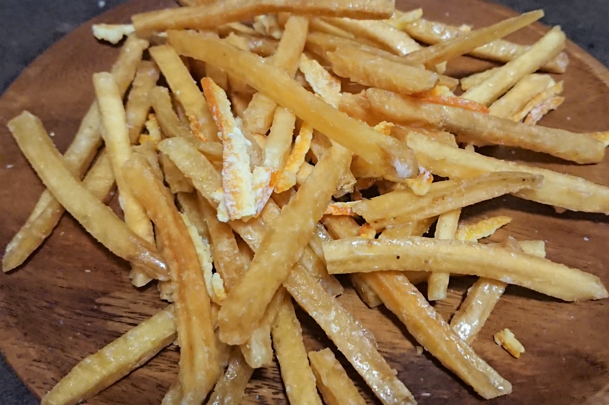 芋ケンピの優しい甘さを「ぽんかんピール」の爽やかな風味が引き立てる、「ぽんかんケンピ」は一度食べるとやみつきになる。