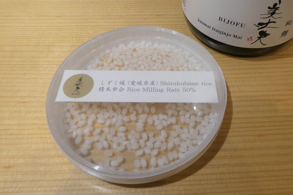「純米大吟醸 美丈夫 舞」の仕込み水は前段で述べた奈半利川の伏流水、使われる米は愛媛県初の酒造好適米「しずく媛」だ。