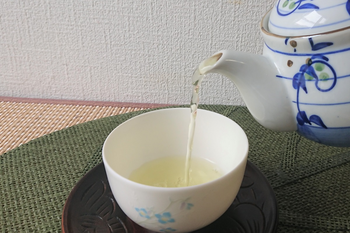その間に急須に100ccのお湯に対し4gの茶葉を入れて、適温になったお湯を急須に注ぎ、好みの濃さになるように60秒から90秒ほど待つ。