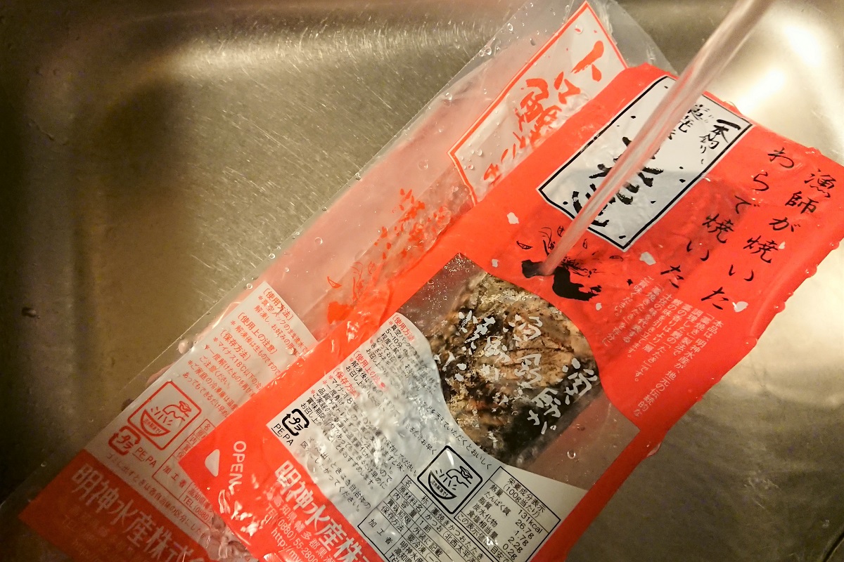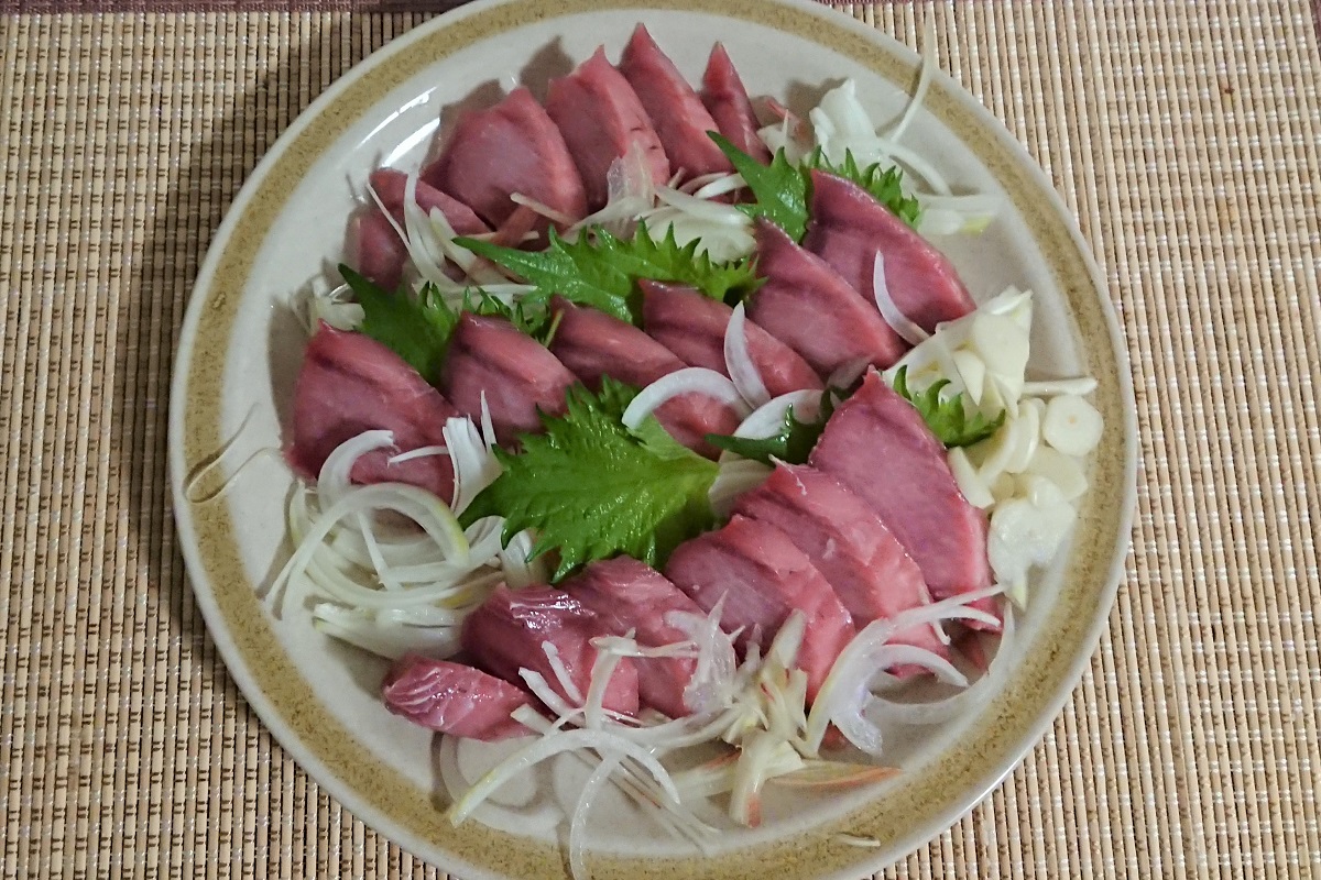 こちらも流水解凍し、厚めに切りニンニクと一緒にいただく。