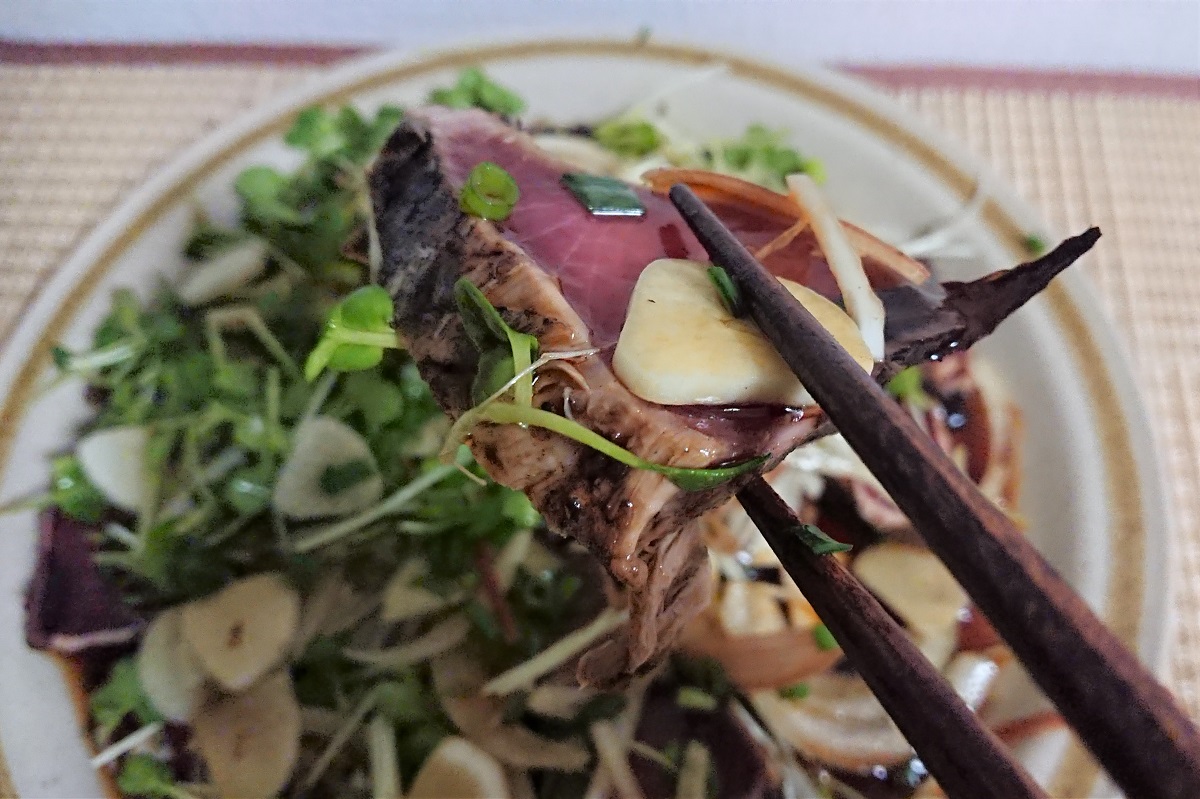もちもちとした食感と、濃厚な鰹の脂の味わいがたまらない。