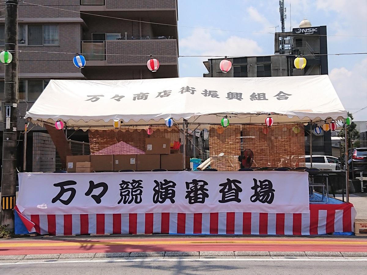 万々商店街振興組合の事前準備を伝えた前編に続き、中編では万々競演場の前日準備の状況をご紹介します。