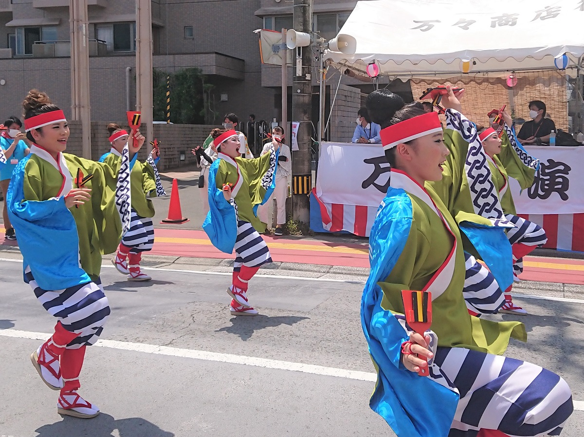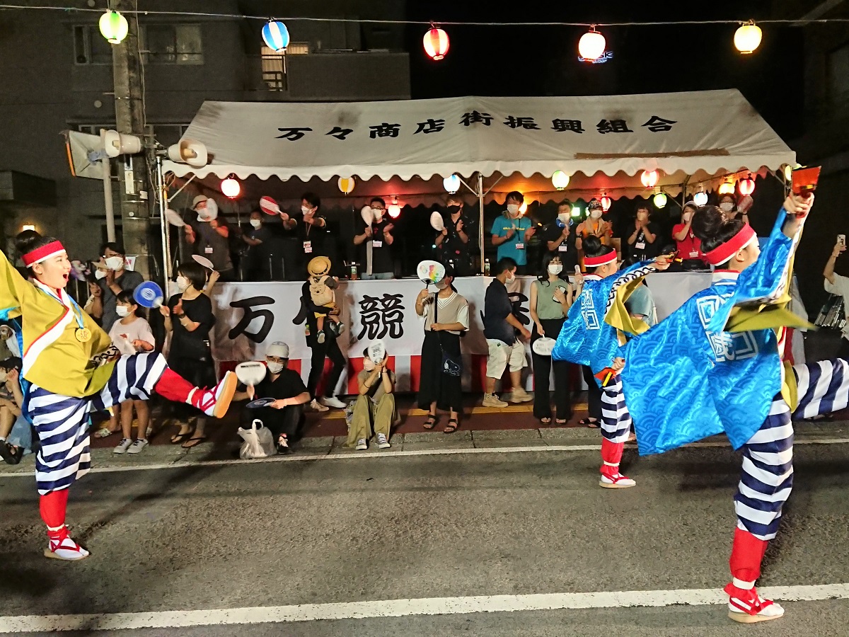 皆の顔には笑顔があふれ、3年ぶりに万々商店街によさこいの音楽と鳴子の響きが帰ってきた。