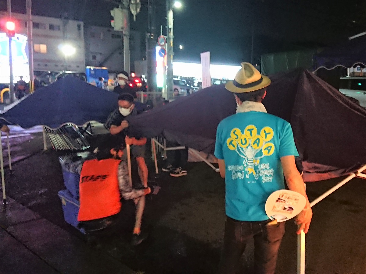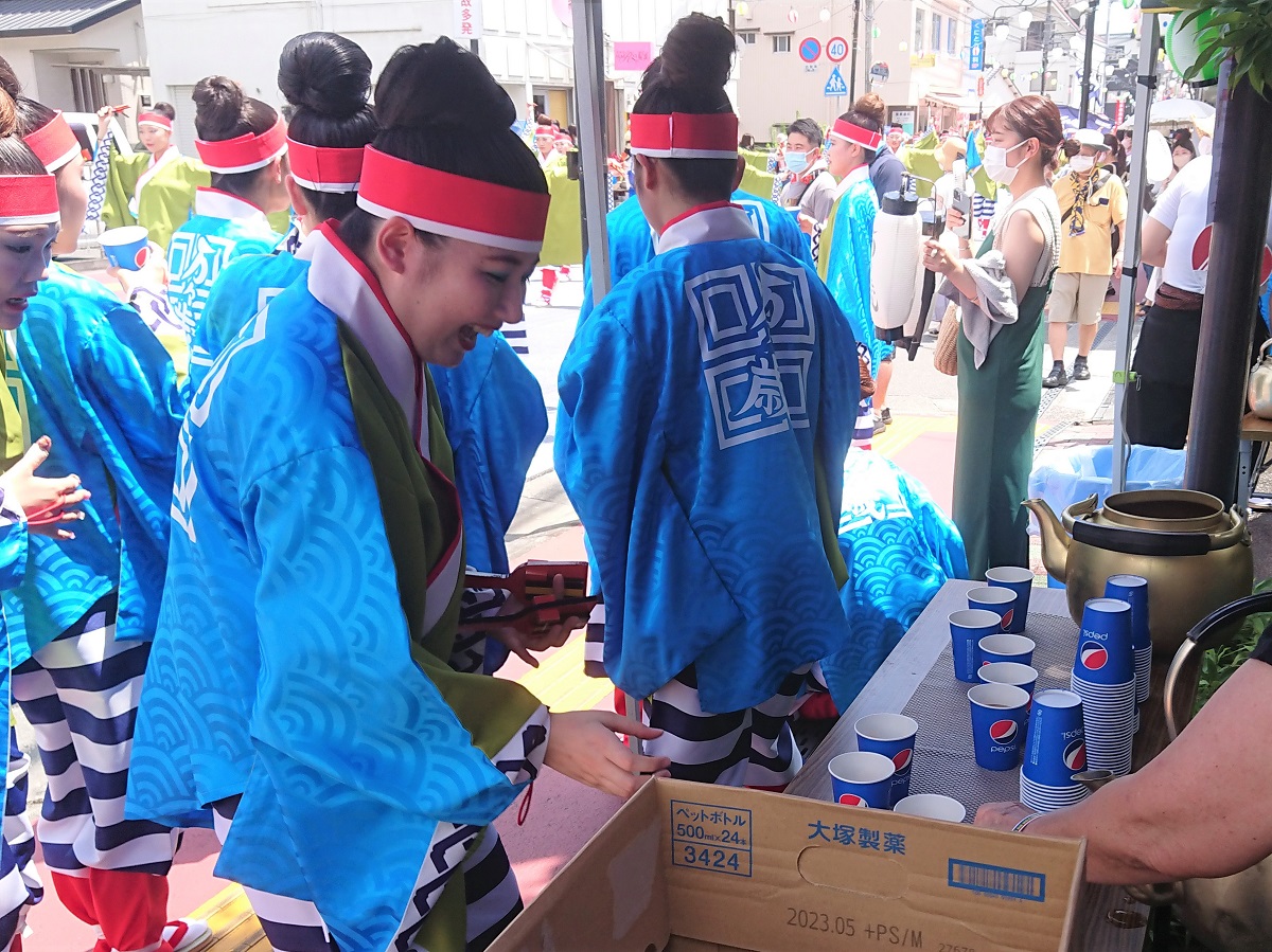踊り切って一息つきたいところだが今年は、用意してもらった麦茶で水分を補給したら、すぐに移動しなければならない。
