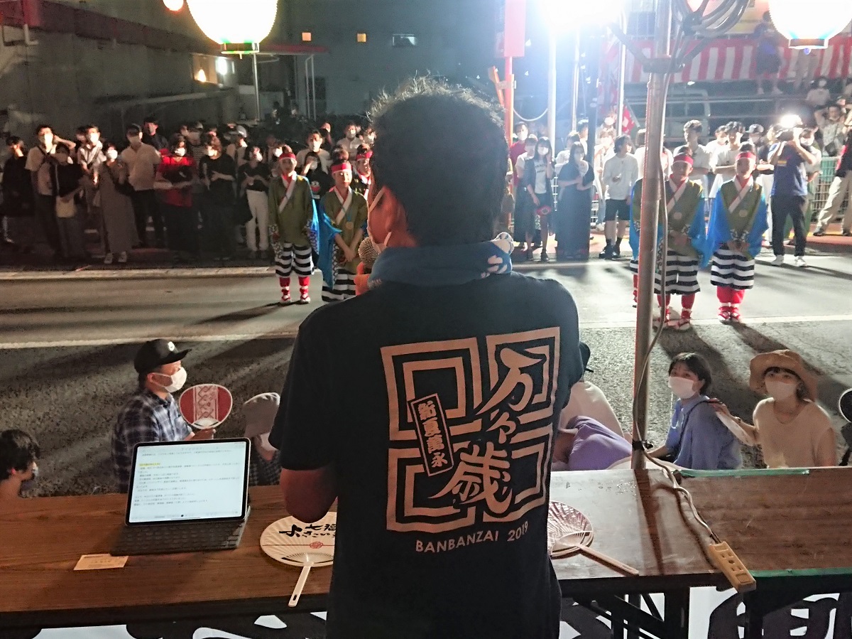 夜を迎え、最後は万々で踊りたいと集まるチームも多く、すべてのチームに踊ってもらおうと万々競演場のスタッフは走り回る。