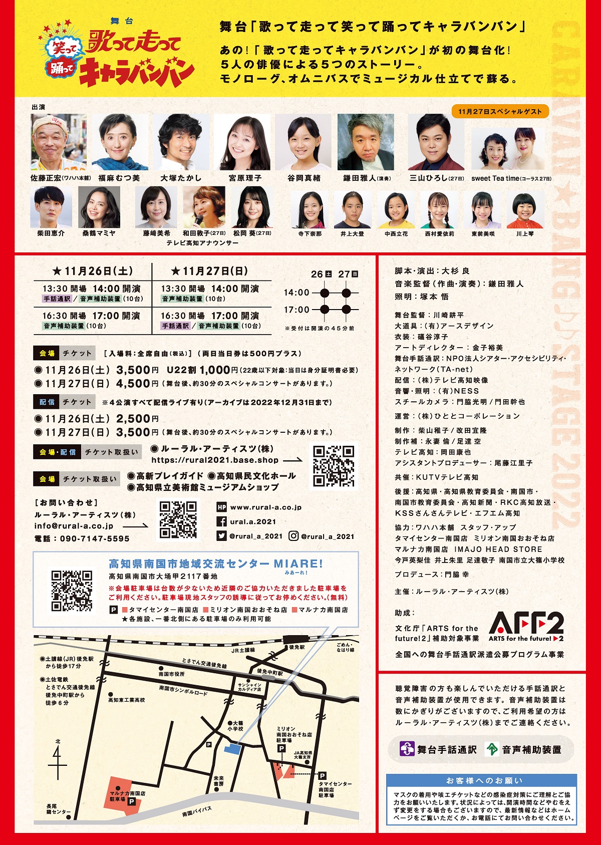 先日の記事でお伝えした、1977年から2016年まで40年に渡り、毎年夏恒例の番組として高知県内で数多くの歌声を響かせた、KUTVテレビ高知主催の視聴者参加型野外歌合戦「歌って走ってキャラバンバン」を舞台化した、舞台「歌って走って笑って踊ってキャラバンバン」。