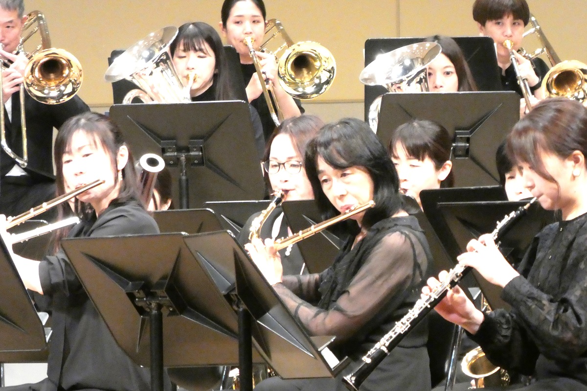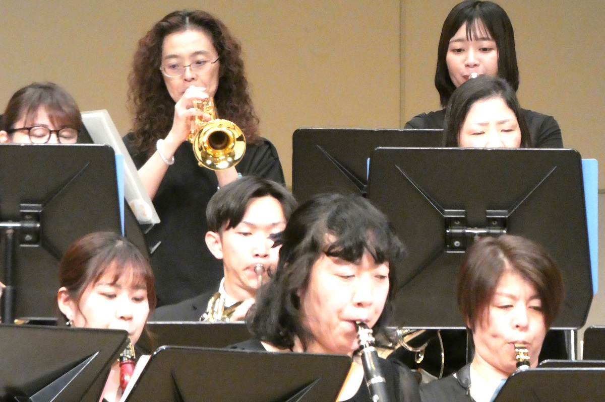 おなじく2024年度全日本吹奏楽コンクール課題曲で、穏やかでさわやかな響きを奏でる「フロンティア・スピリット」、高知県出身の松下倫士氏の作曲で「愛する人を想う気持ちや苦悩、葛藤といった様々な心の変化を音で表現した」という「ル・シャン・ドゥ・ラムール・エ・ドゥ・ラ・プリエール ~愛と祈りの歌~」、パーカッションが印象的な「メルヘン」と演奏は続く。