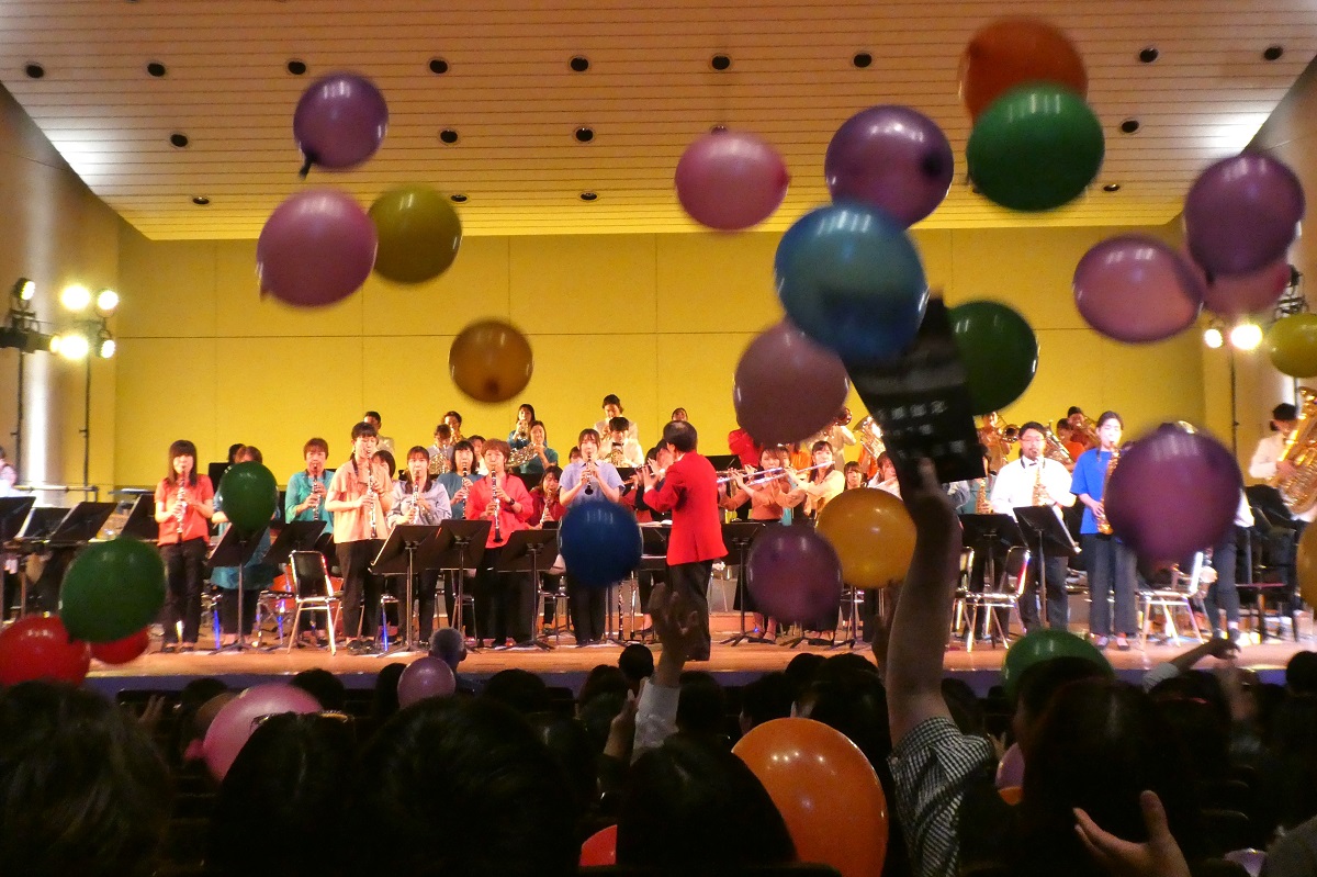 そして演奏のフィナーレ。ホールの天井から無数の風船が降り注ぐ。