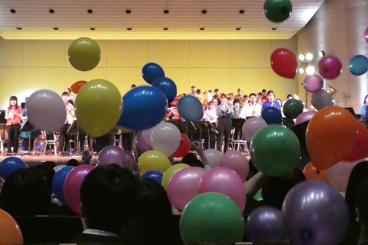 そして演奏のフィナーレ。ホールの天井から無数の風船が降り注ぐ。