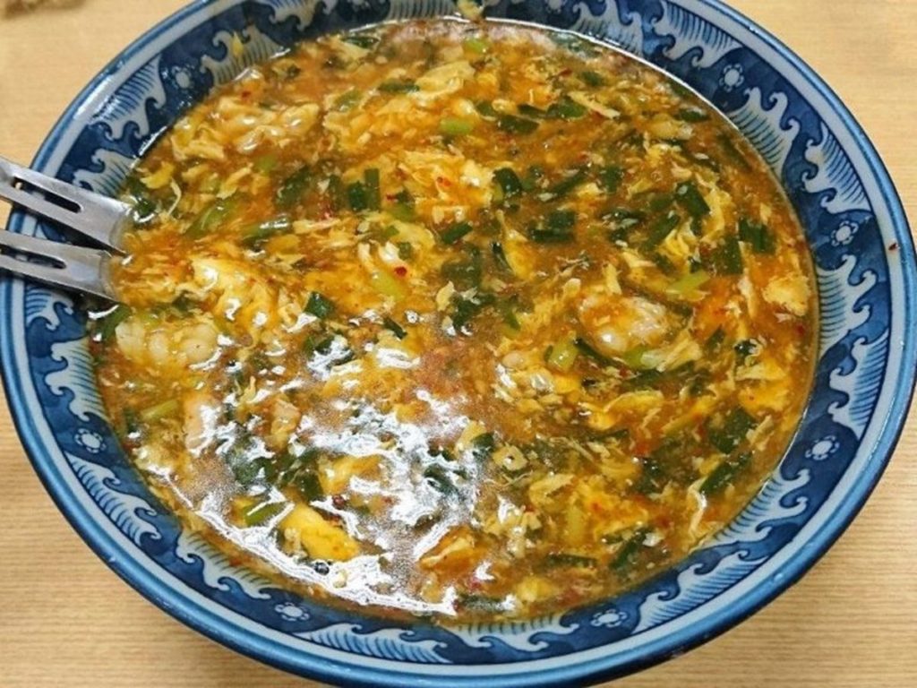 甘辛スープに細めの麺を合わせていて、あんがよく絡む!