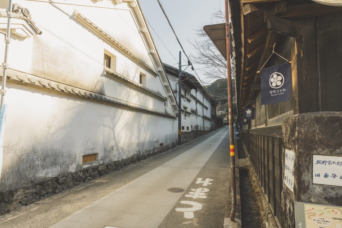 続いてやって来たのは、江戸時代より城下町として栄えた佐川町中心部の上町(うえまち)地区にある「酒蔵の道」。