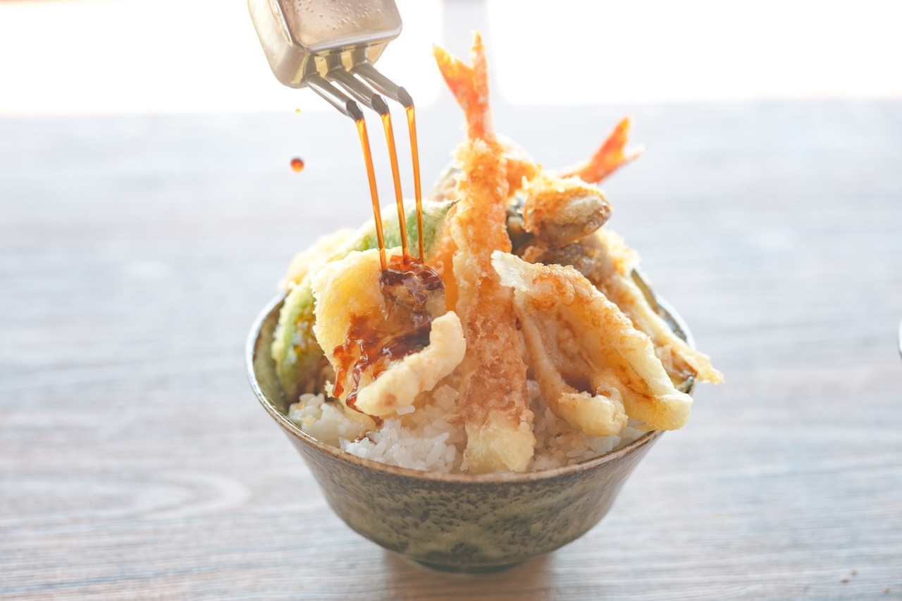 華やかな海鮮丼のほか、天丼「灯」(1550円)もおすすめの一杯。