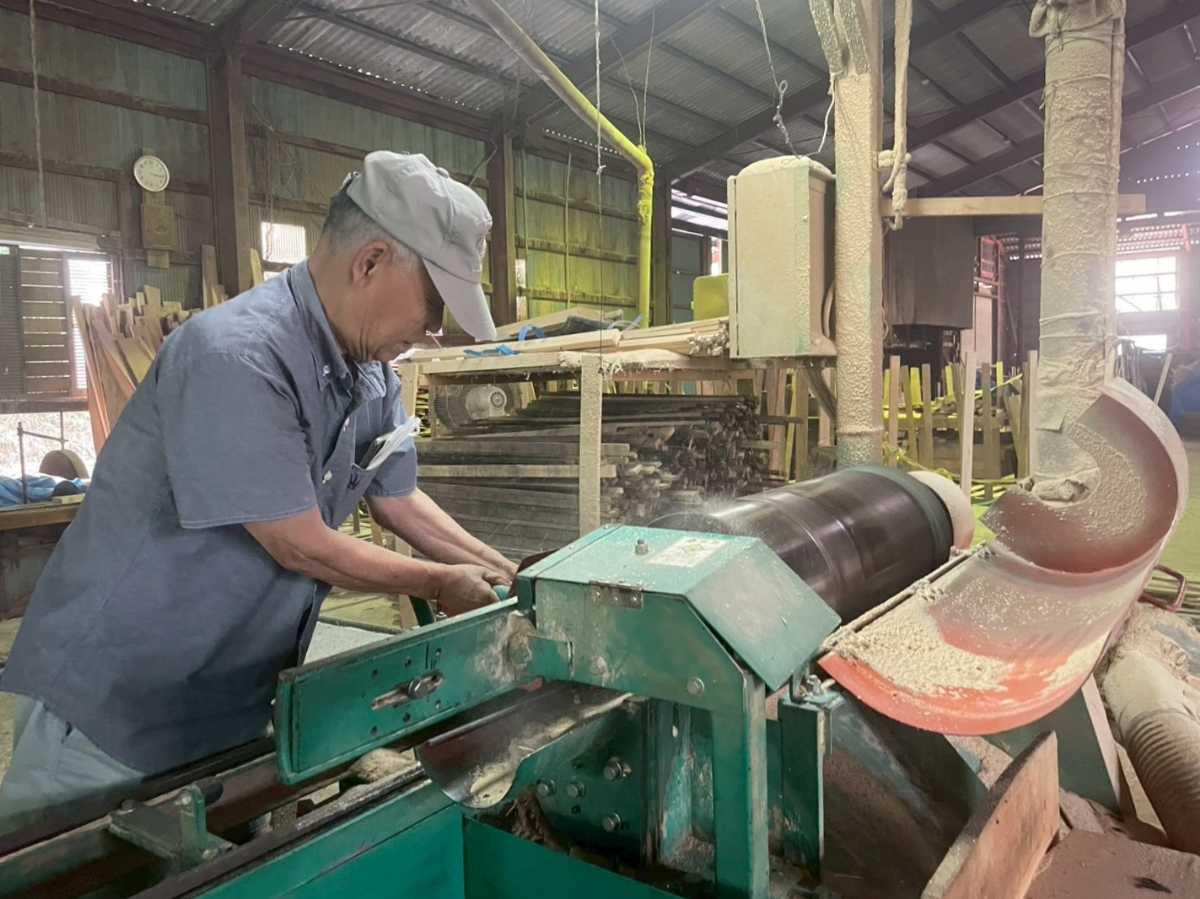 最後に、部材の左右に凹凸の溝を付ける「さねはぎ」という工程を行う。