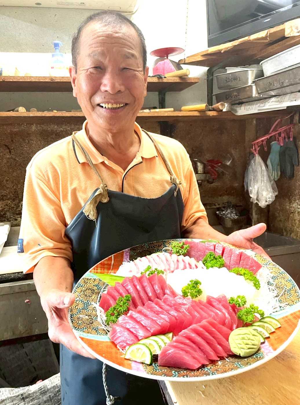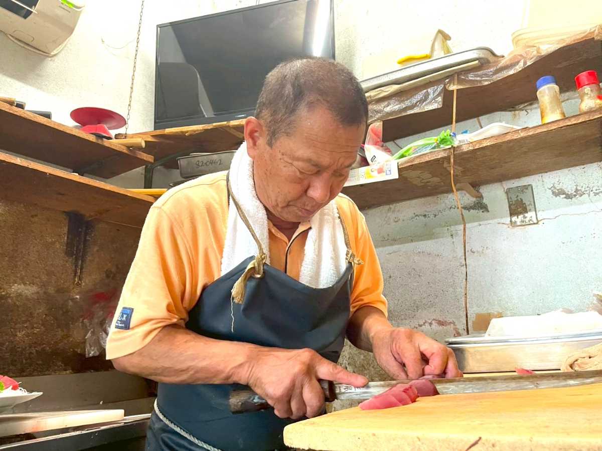 「今日はあの人が買ってくれるはずや。量はこれぐらいかなぁ」と、買い手を想像しながら、包丁を入れて刺身の舟盛りを作っていく。