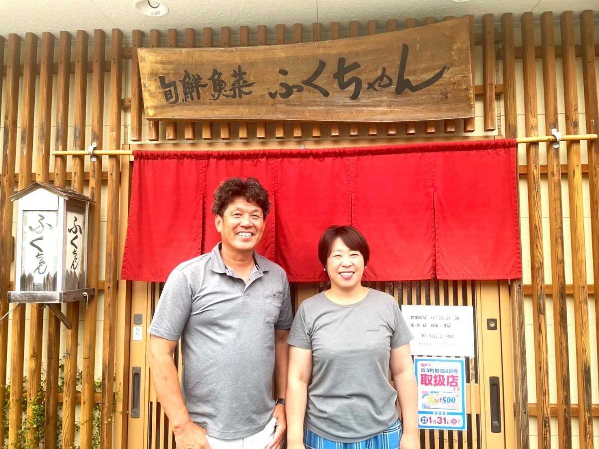 旬鮮魚菜「ふくちゃん」は、地元で建設業などを営む山下龍造さん(50)、美紀さん(51)夫妻が10年前に開いた店だ。