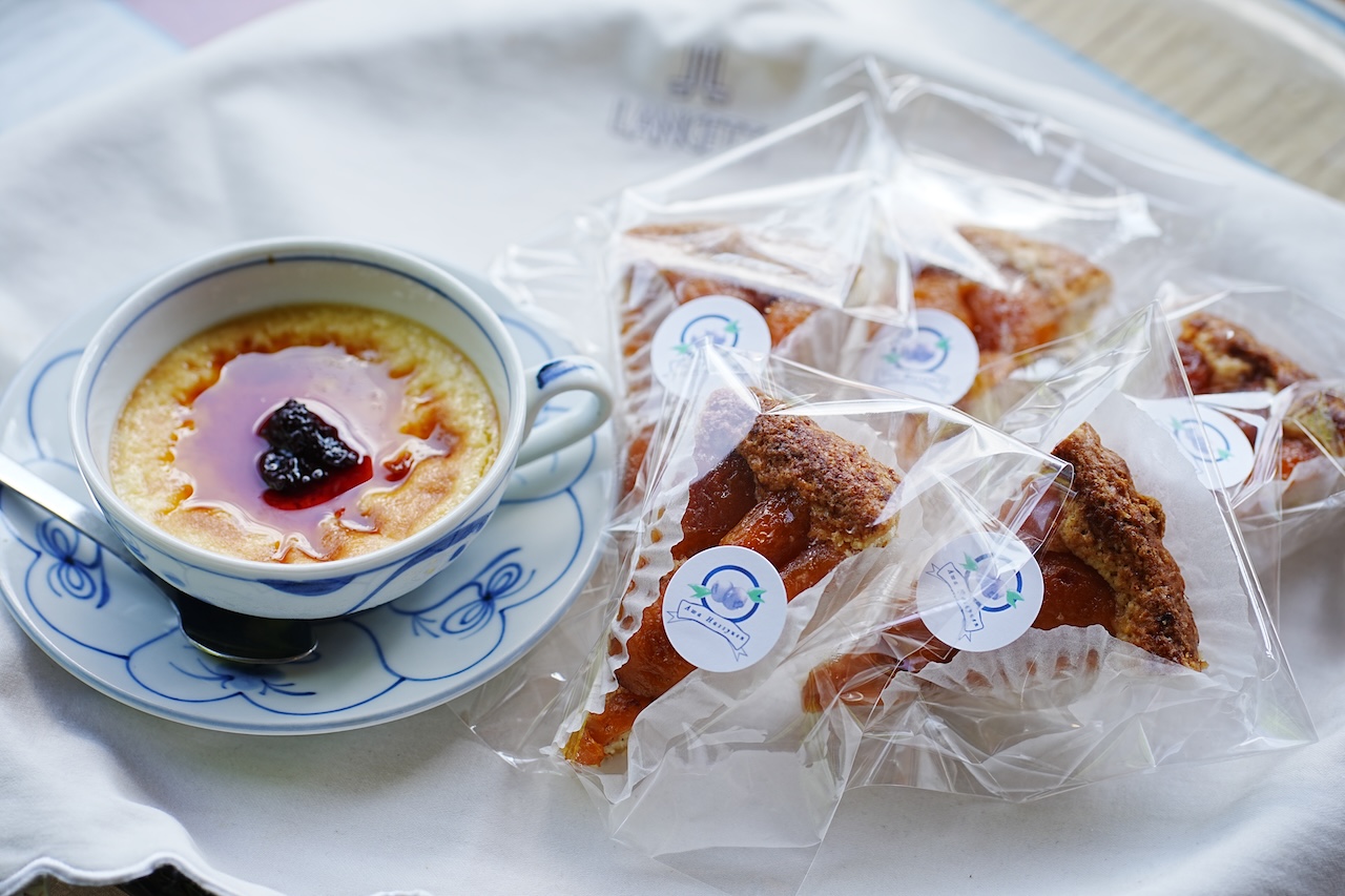 ・焼きプリン(自家製ブルーベリーソース、キャラメルソースがけ)
