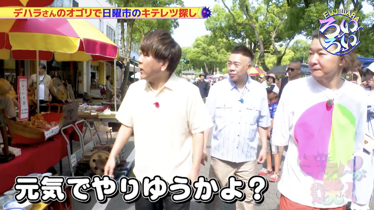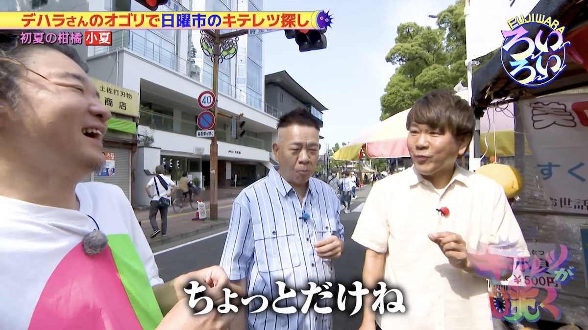今日はデハラさんの奢りということで、FUJIWARAの二人は存分に日曜市を楽しもうと息巻いている。