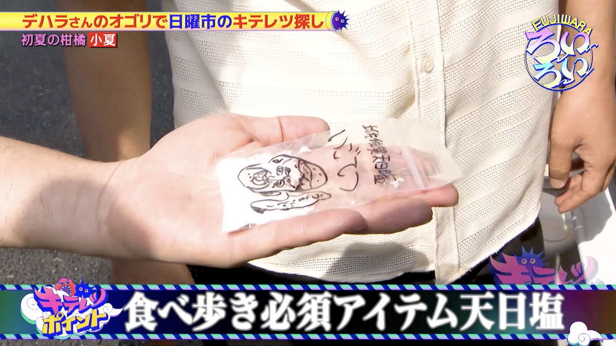 デハラさんが日曜市での食べ歩きに欠かせないアイテムを紹介!それは天日塩。