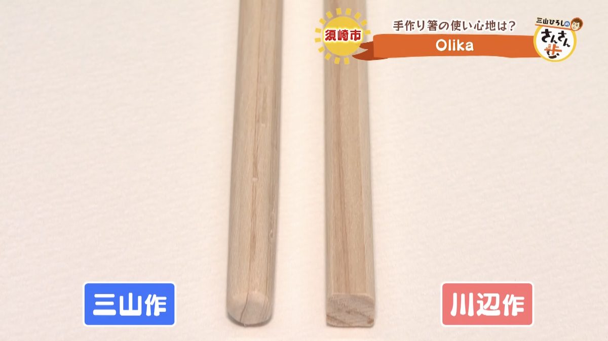 三山さんのお箸は角をしっかり取って、丸く優しい仕上がりに。そして川辺アナは、カンナで正確に削って綺麗な面に仕上げた。
