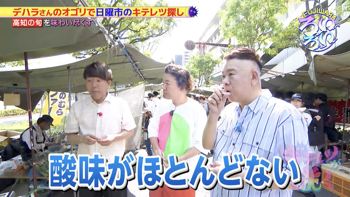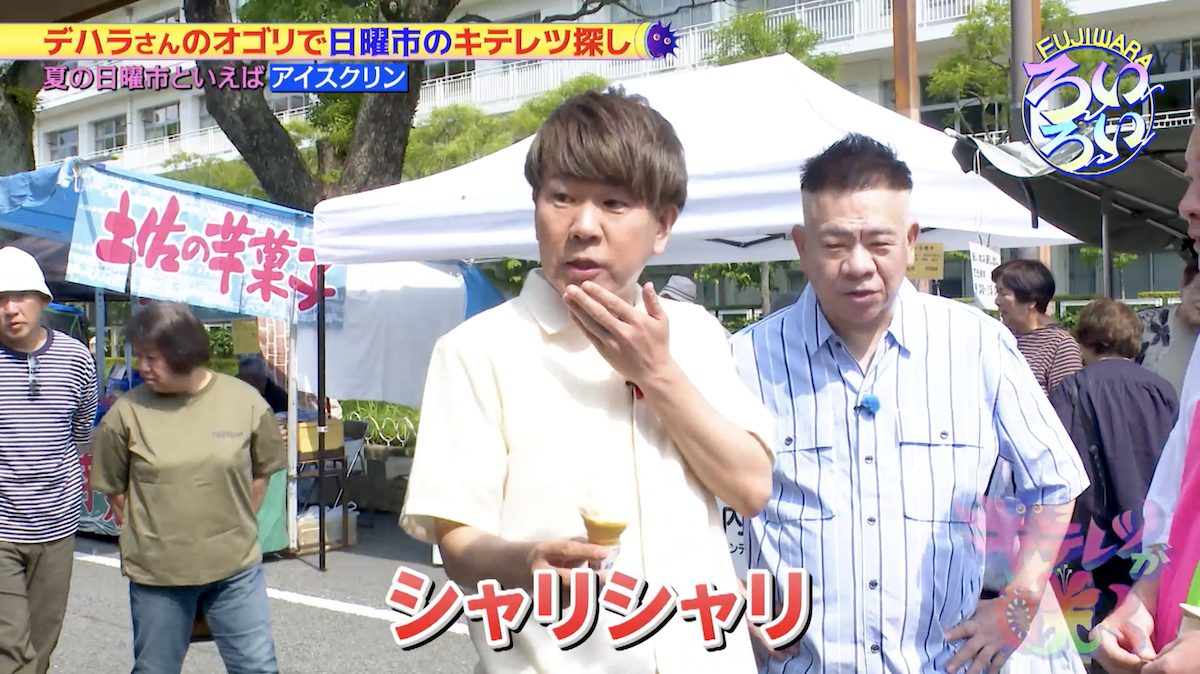 女性たちが揃って同じものを食べているところに出くわしたFUJIWARAの二人。