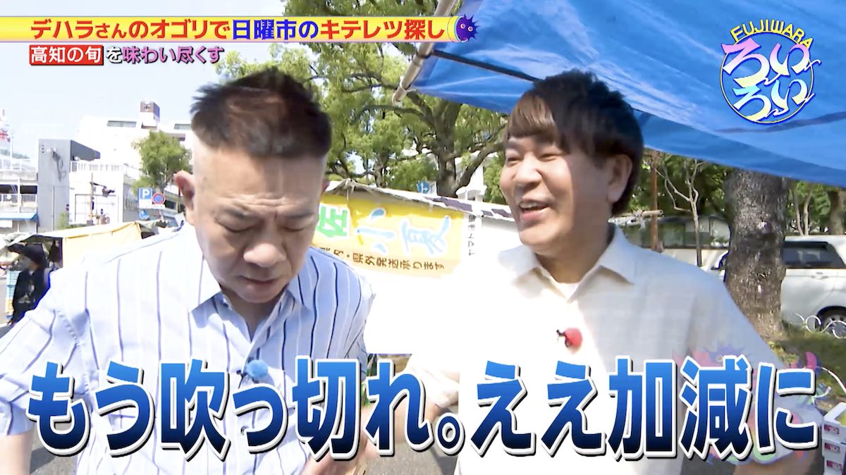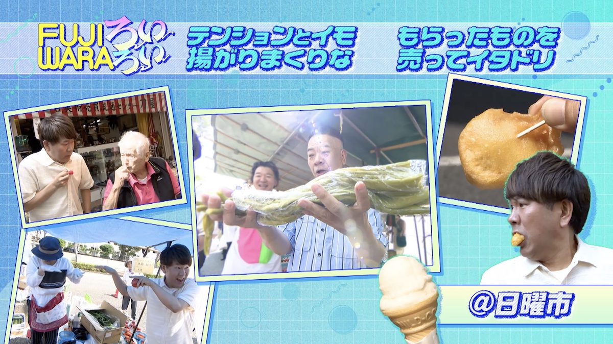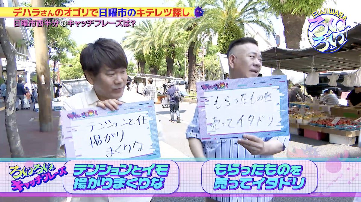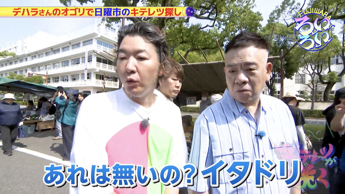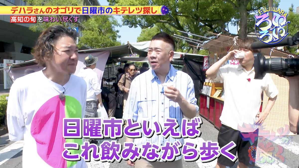 前回の記事に引き続き、フィギュアイラストレーター・デハラユキノリさんの案内で日曜市を「ろいろい」する、お笑い芸人FUJIWARAの二人。