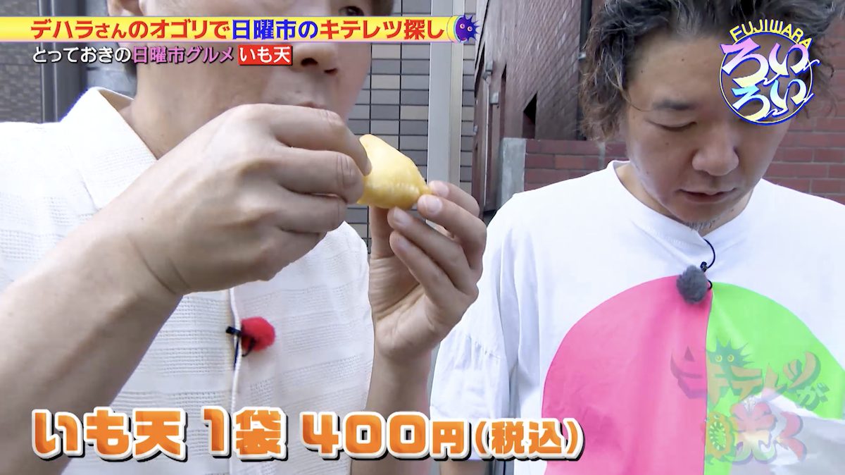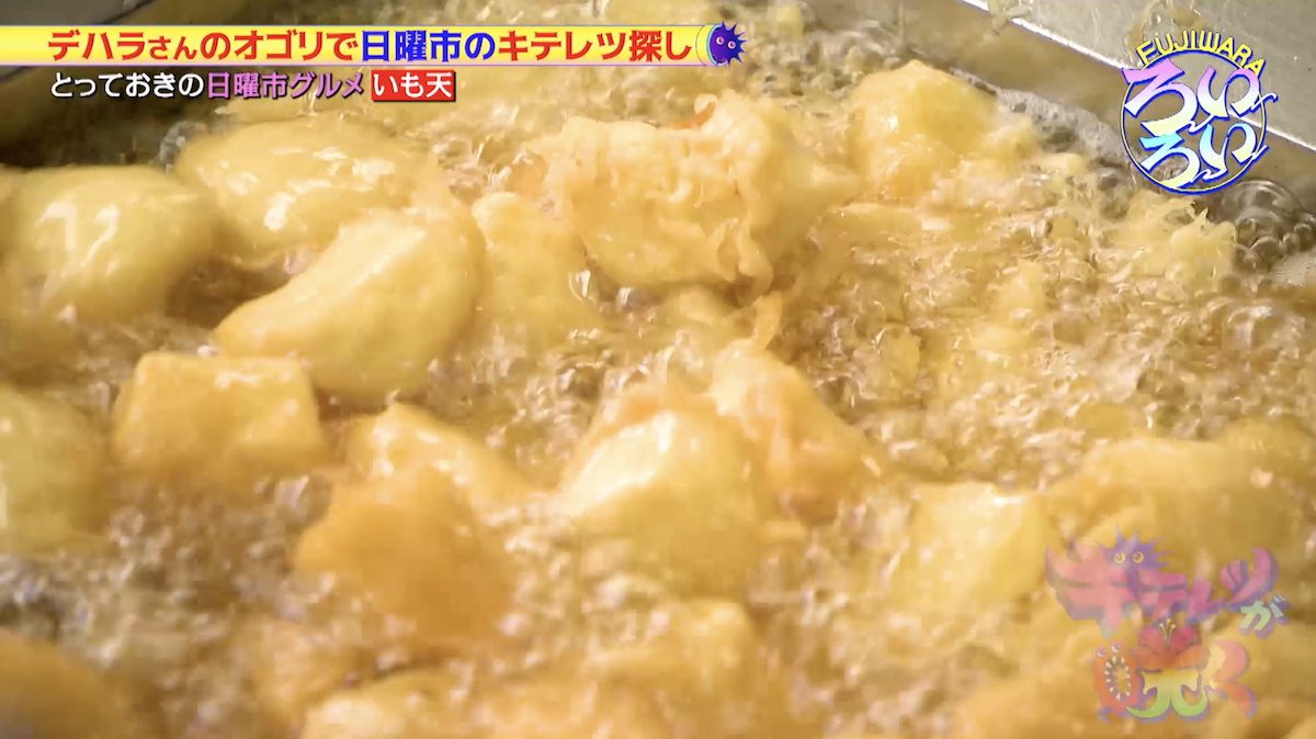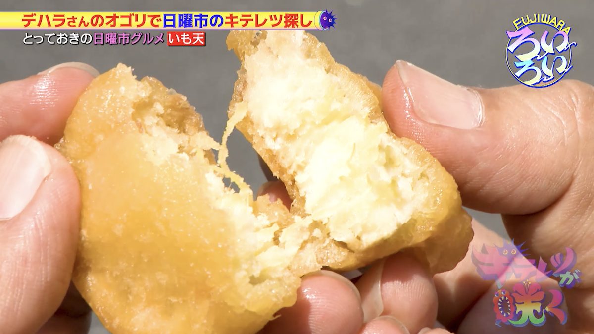 デハラさんに何を食べているのか聞いてみると「いも天」だということが分かった。