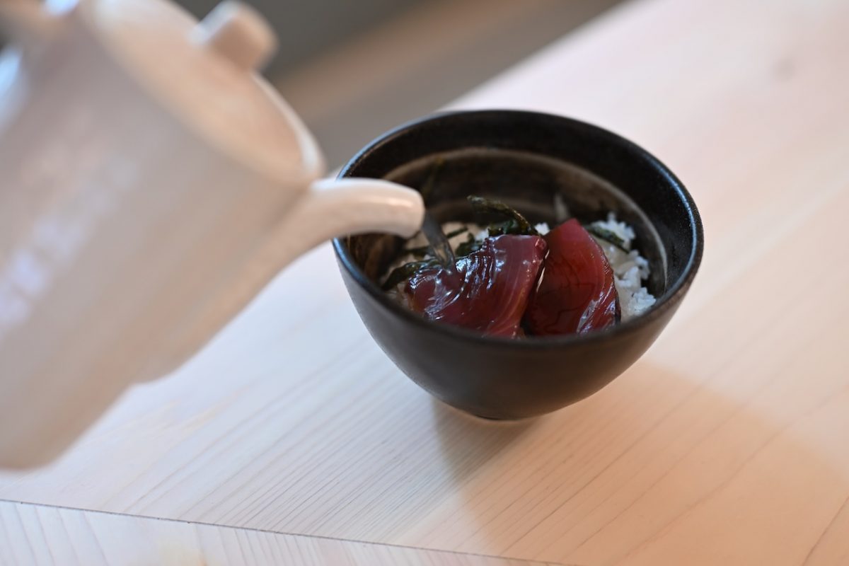 「鰹の土佐茶漬け」(1200円)は、須崎から仕入れた新鮮な鰹を甘めの醤油ダレで味付けしていてご飯によく合う。