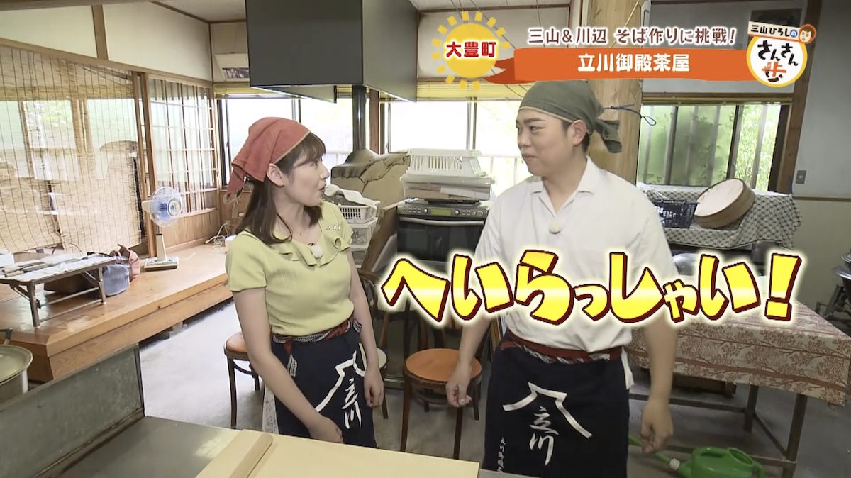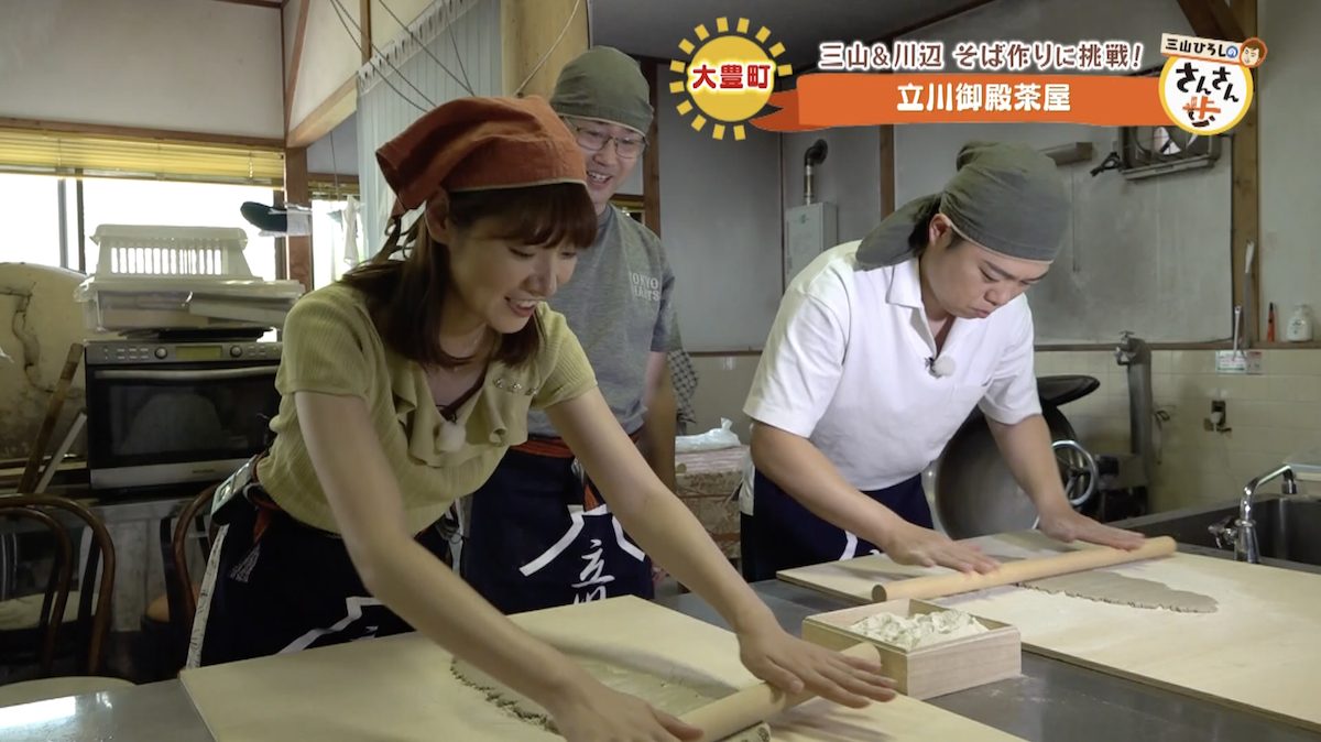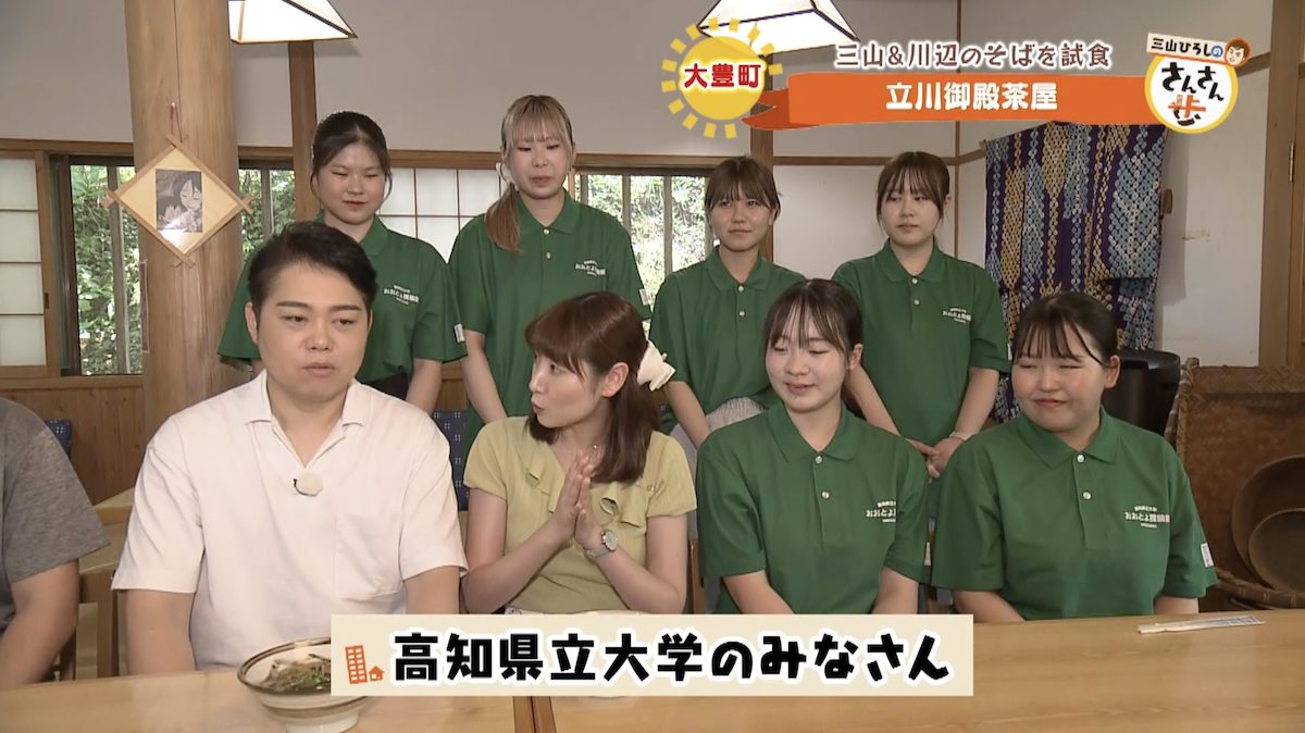 大豊町の名物である立川そばが、後継者や学生さんの若い力で多くの方へ知られている様子を見て、応援していきたい!と思った三山さんと川辺アナ。