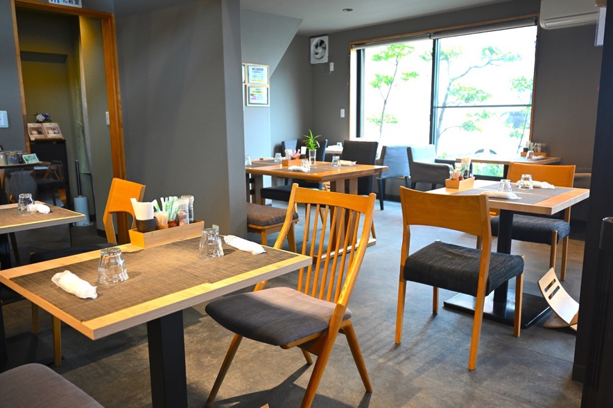 和モダンな店内は、肩肘張らずに食事が楽しめるカジュアルな雰囲気。大きな窓から差し込む光が心地良い。