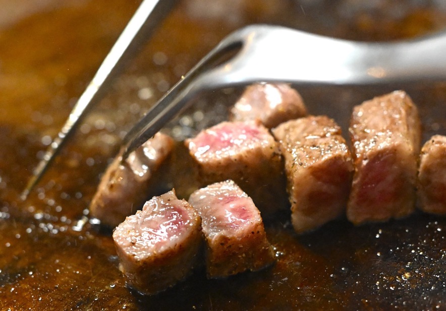 確かな目利きで選び抜いた、細かなサシが美しい黒毛和牛を鉄板で焼き上げたステーキランチ。