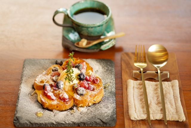 たくさんのベリーととろけるアイス、バケットを使った本格派のフレンチトーストのスイーツと一緒に、ランチの余韻を引き立たせてくれる。