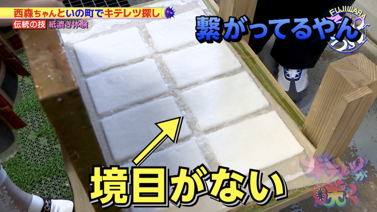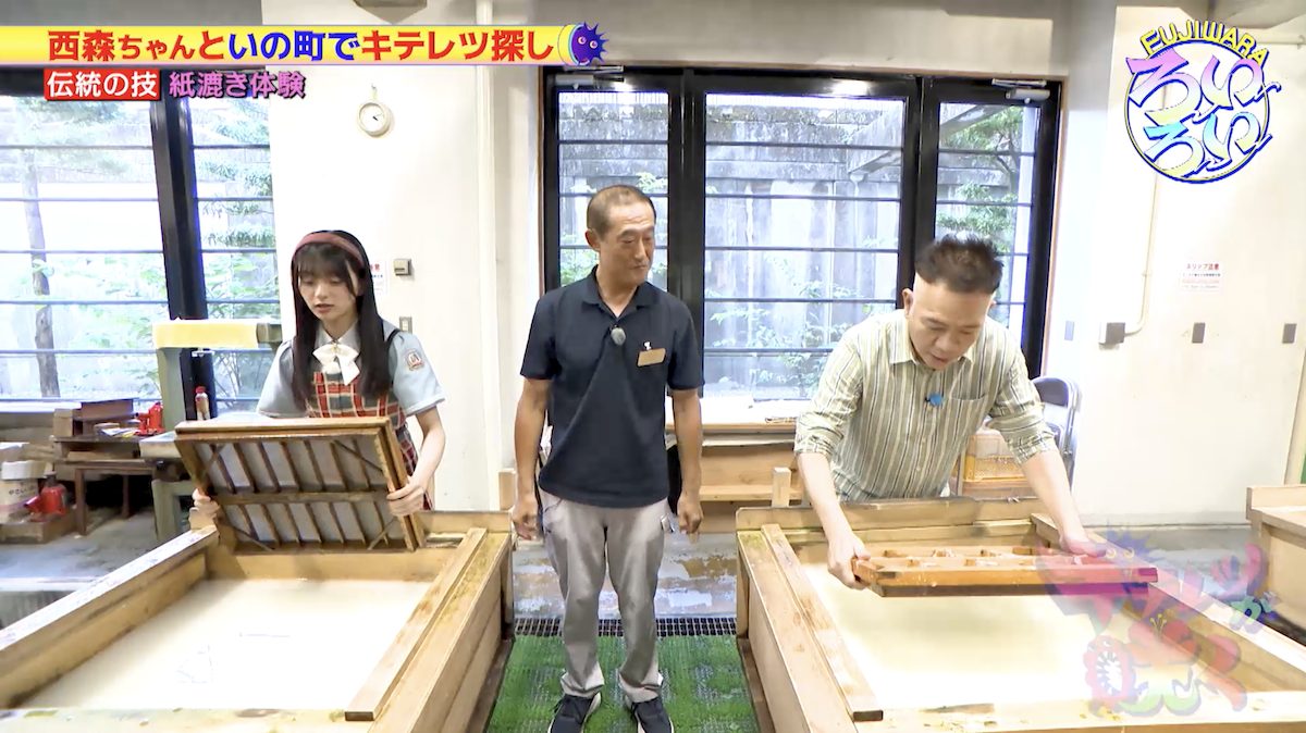なかなか上手くできない藤本さんを横目に、原西さんと西森さんも紙漉きに挑戦!二人とも上手に出来ているように思えたのだが…