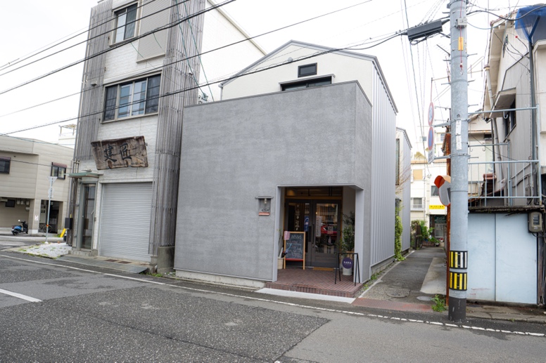 電車通りから一本東の通りを進むと、見えてくるモダンな建物。