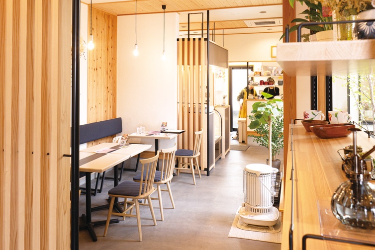 店内は木の温かみを感じる、ナチュラルで落ち着いた雰囲気。