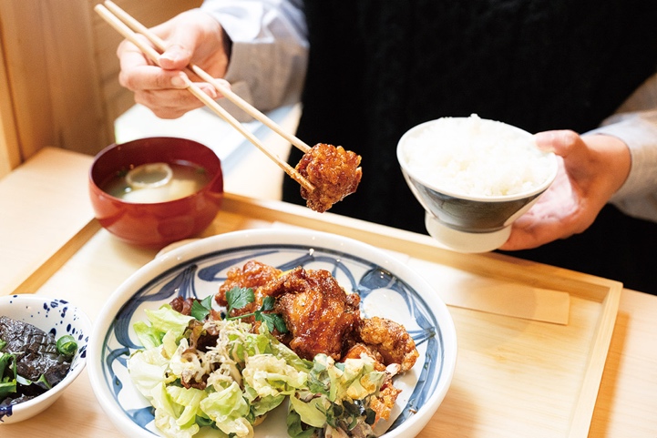 甘辛いタレをまとった大ぶりの唐揚げは、とにかくご飯が進む進む。