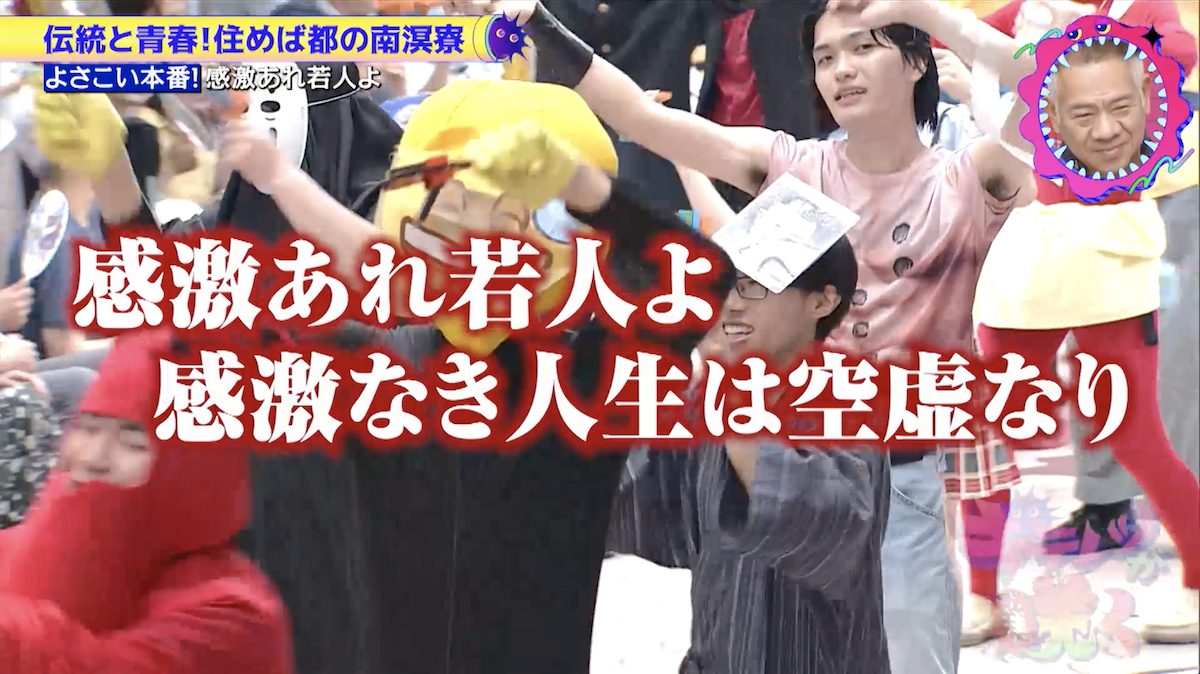 高知市で毎年8月9〜12日に開催されるよさこい祭り。夏の風物詩として有名なお祭りに西森さんが特番企画で挑戦する。